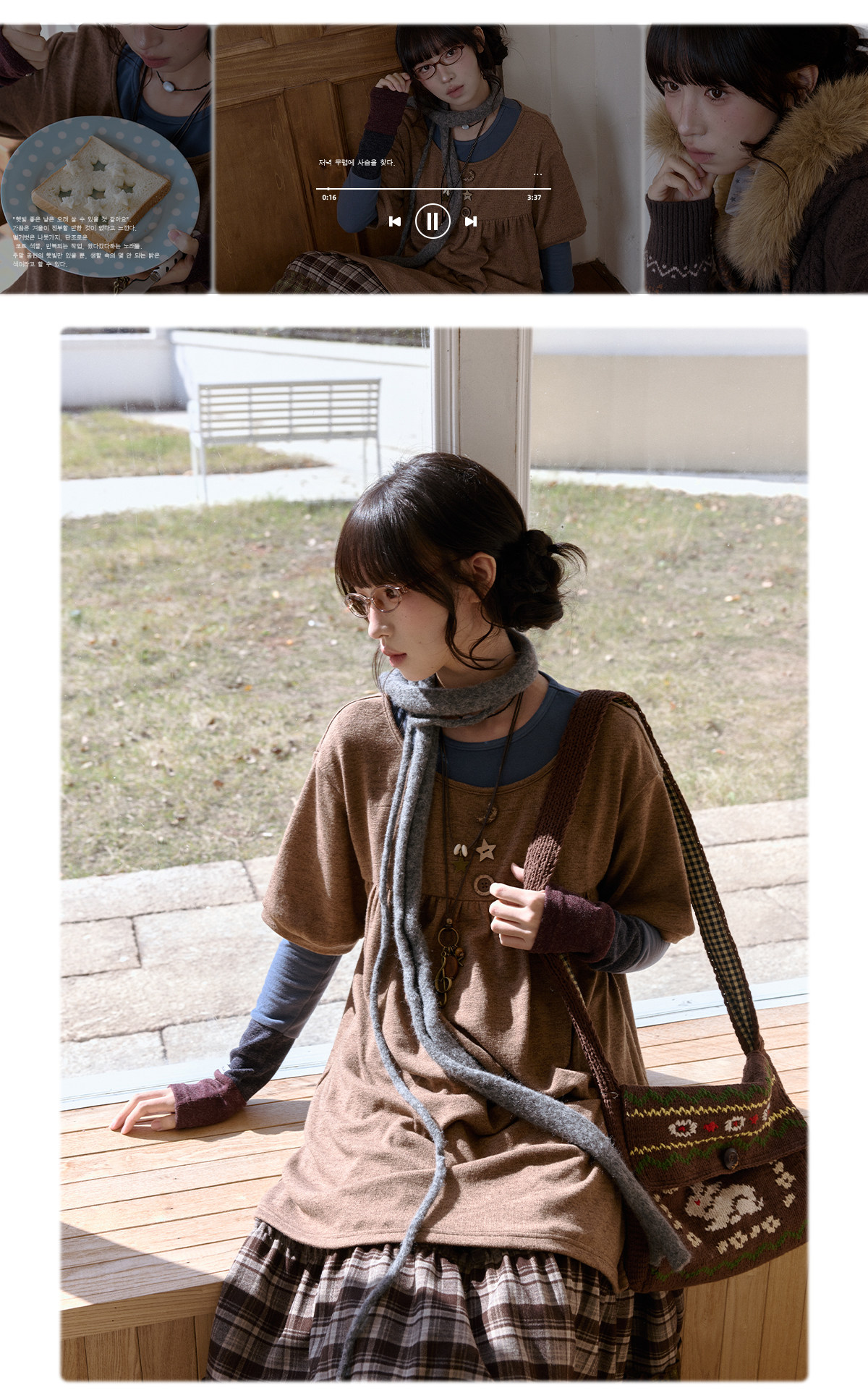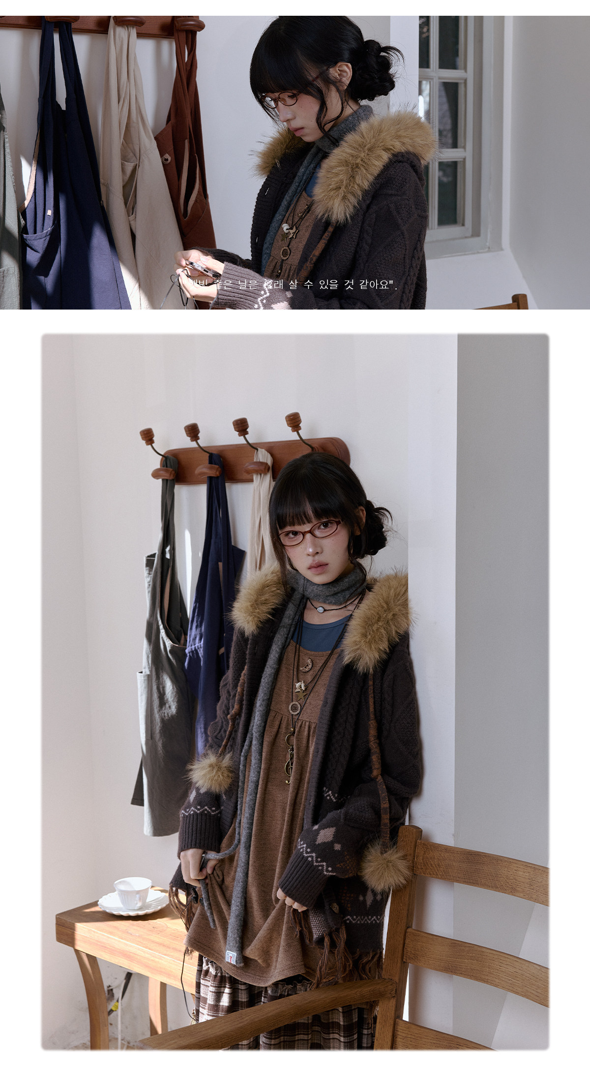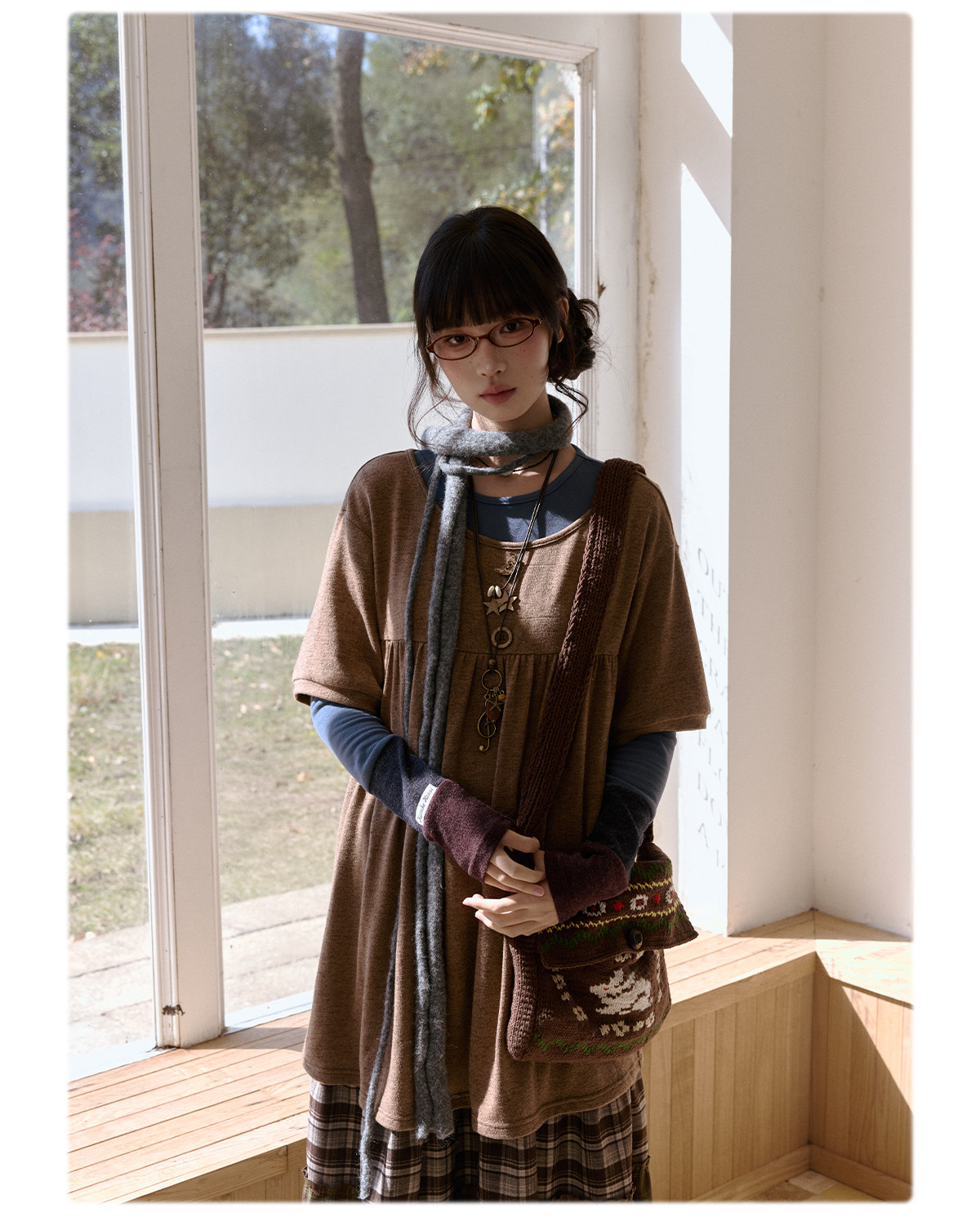 【梗豆物语】暮时寻鹿 森系慵懒风针织套装流苏毛织外套宽松秋冬 [Original Page Link]