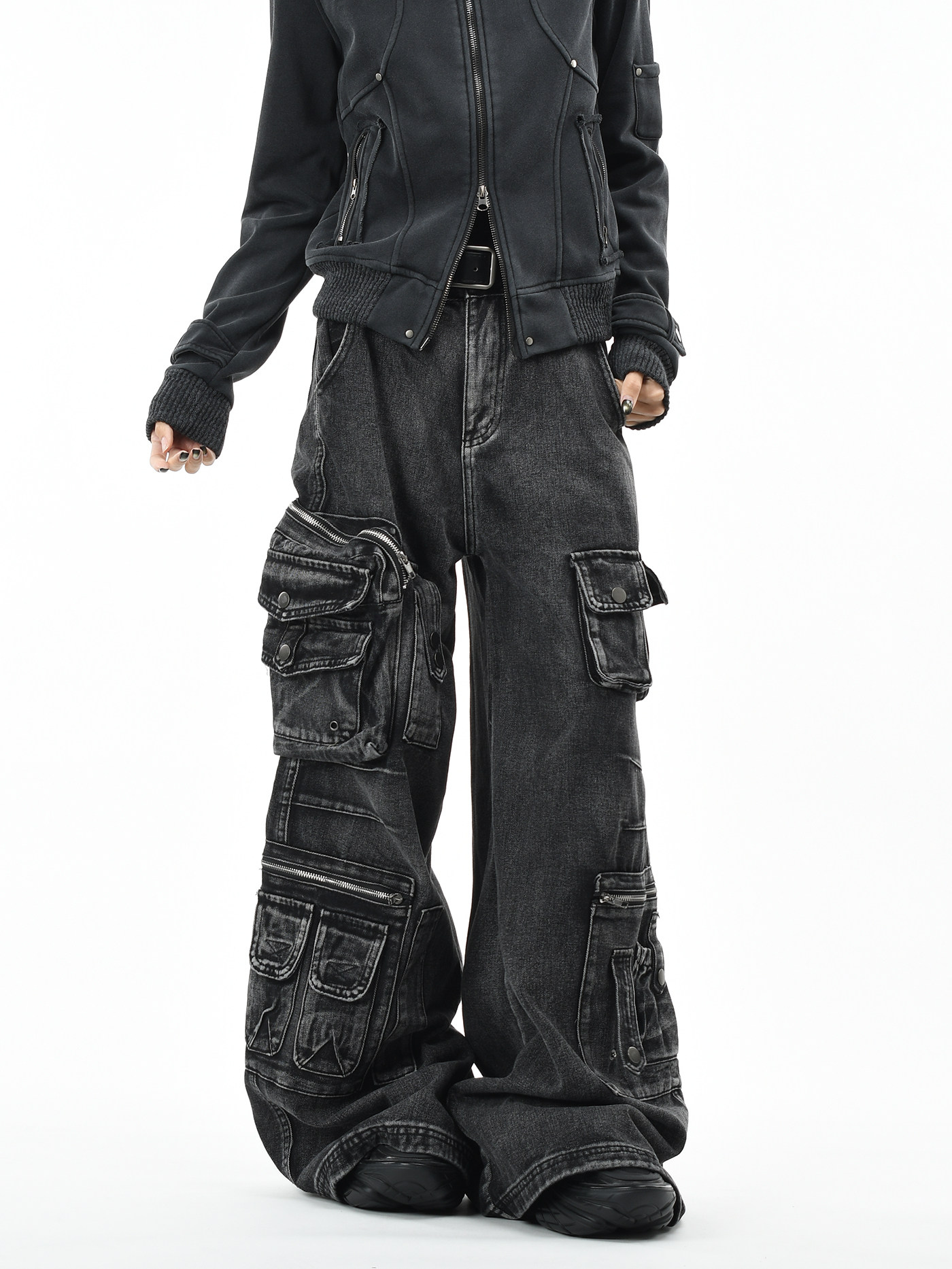 OV原创美式工装重磅多口袋水洗牛仔裤男女宽松阔腿高街机能长裤潮 [Original Page Link]