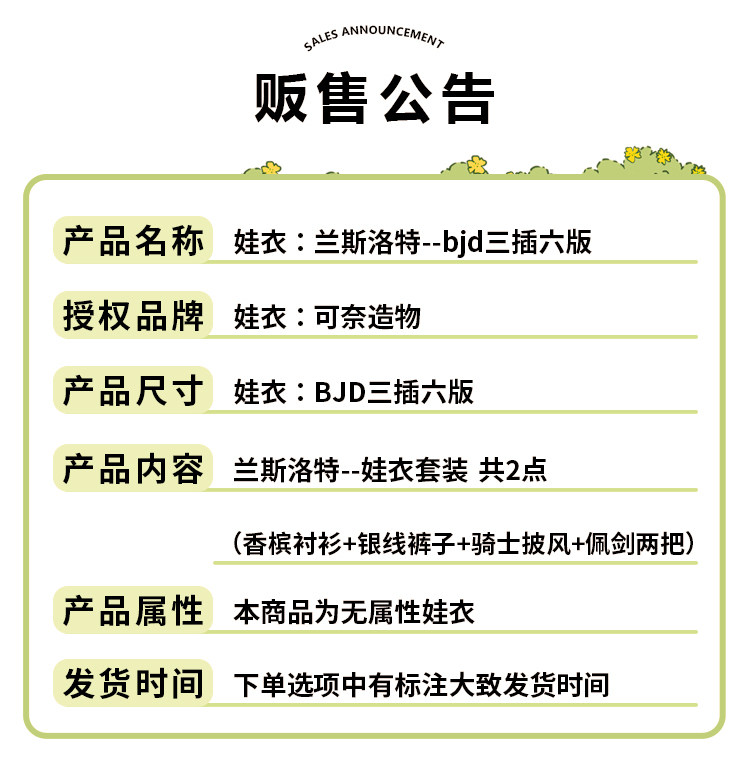 原创兰斯洛特六分bjd娃衣华丽骑士风无属性玩偶手办帅气衣服套装 [Original Page Link]