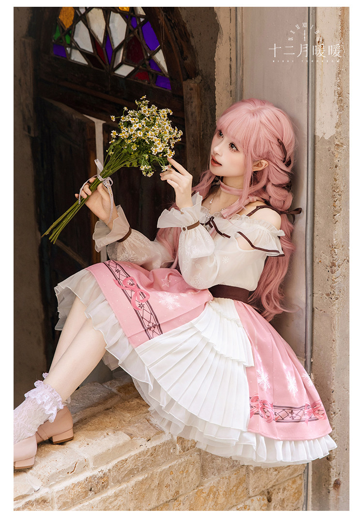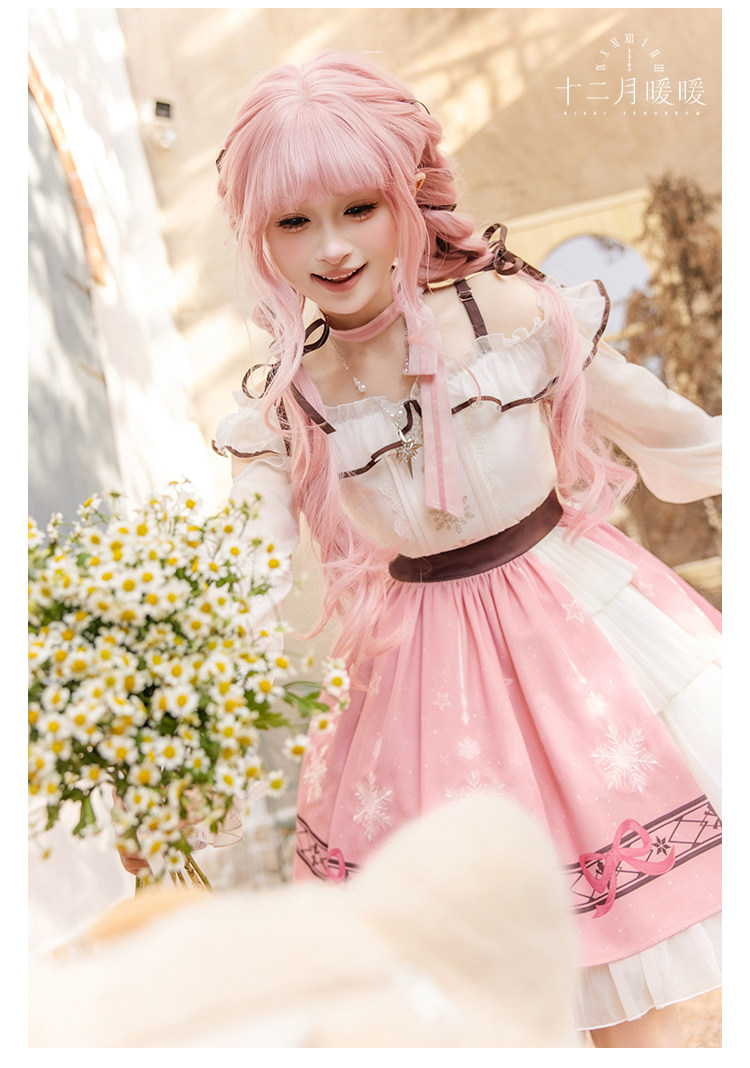 定金十二月暖暖满分出发op一字肩木耳边印花Lolita连衣裙星芒颈饰 [Original Page Link]