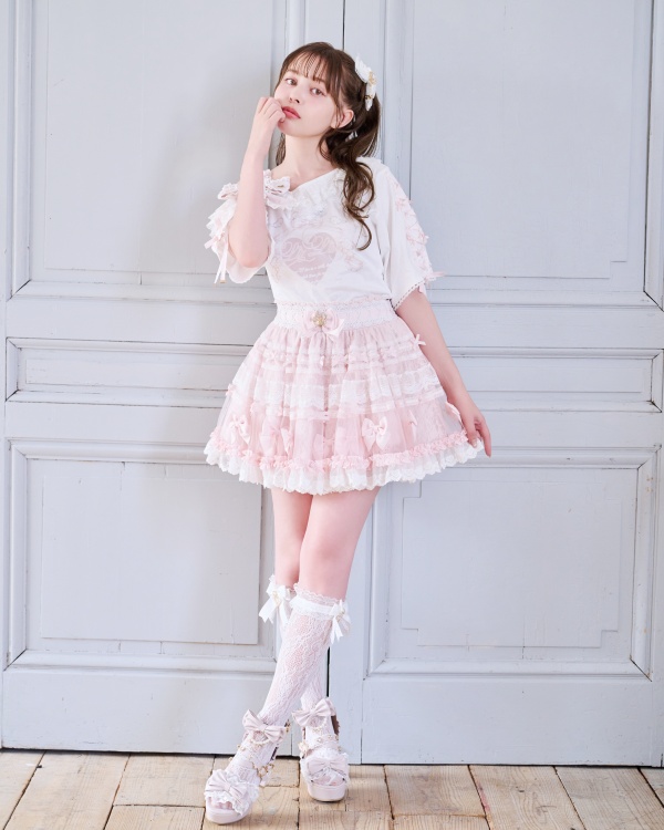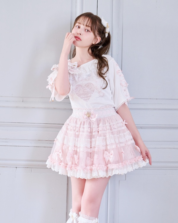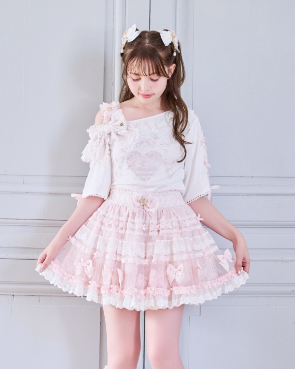 Liz Japanese-style mass-produced new sweet and cute Lolita lace skirt with multiple bows, 8869 midi skirt/tiered skirt.
