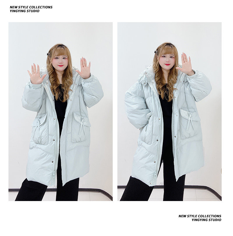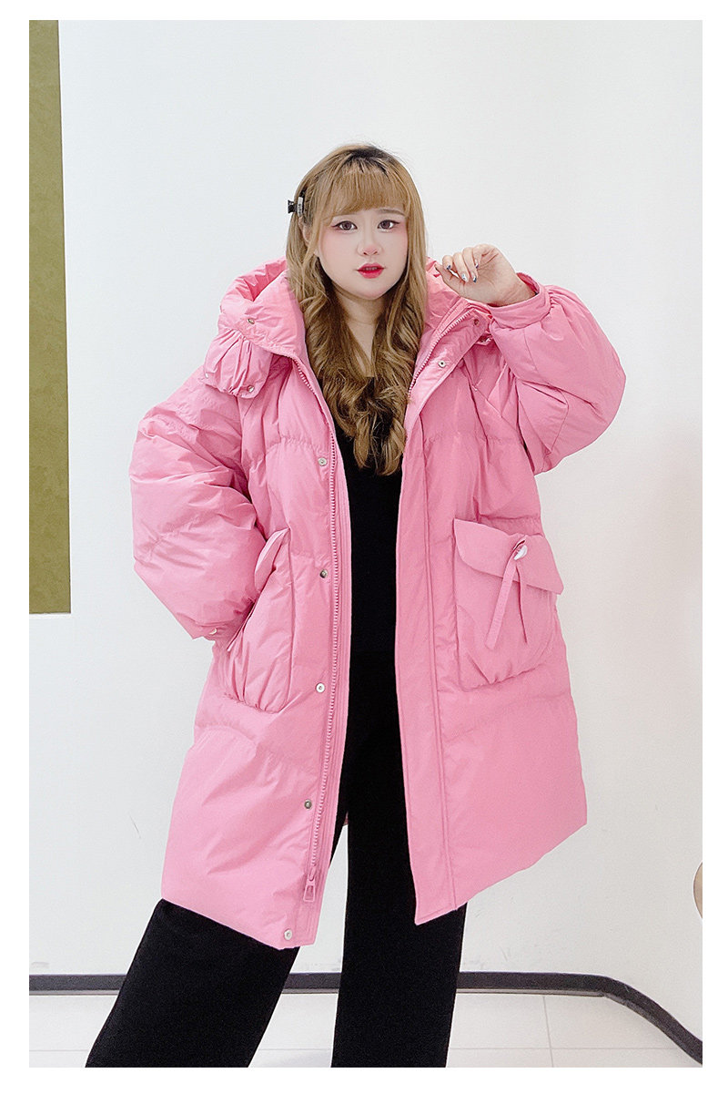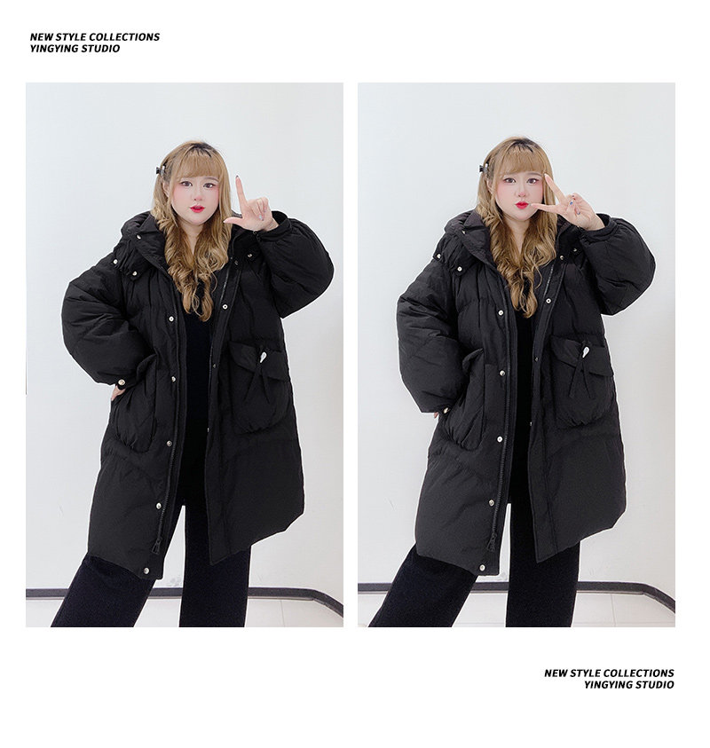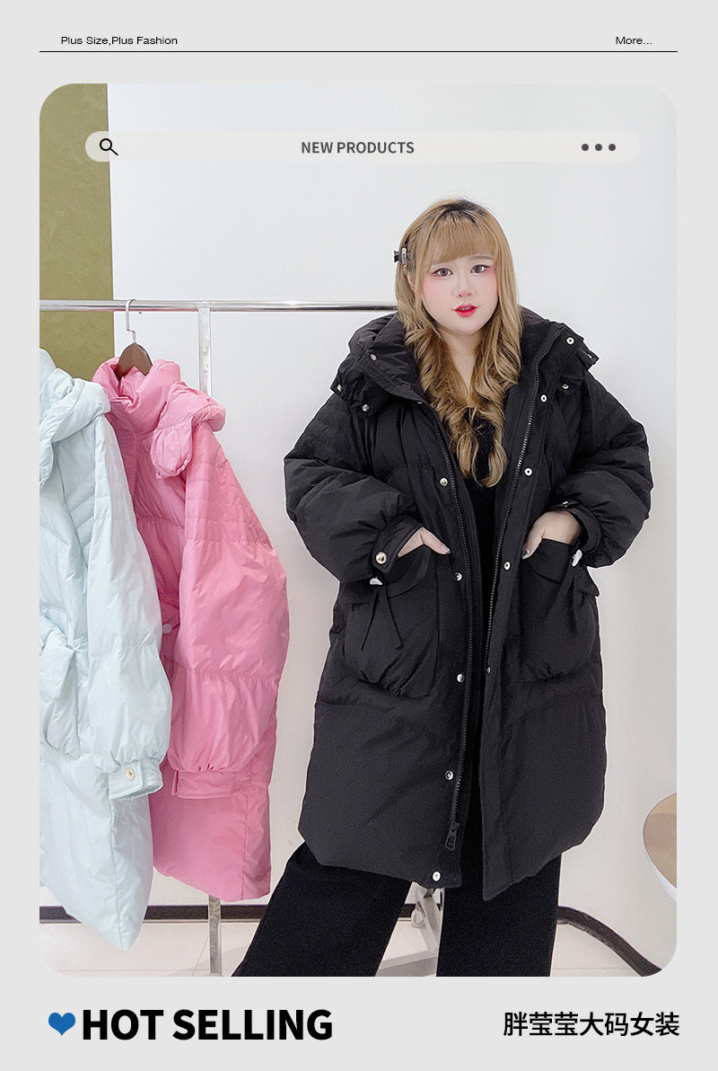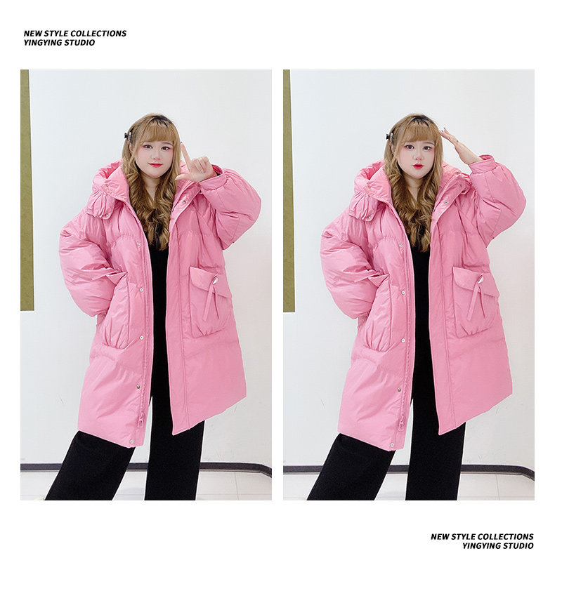 少女减龄大口袋保暖立领外套胖莹莹大码女装冬季中长款连帽羽绒服 [Original Page Link]