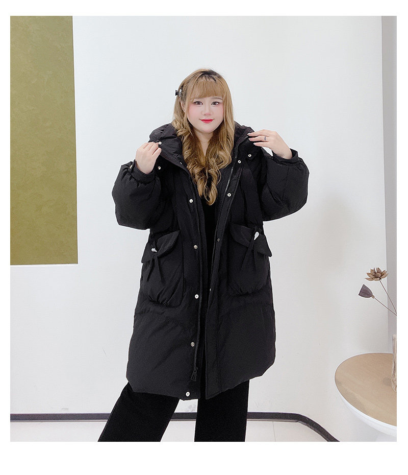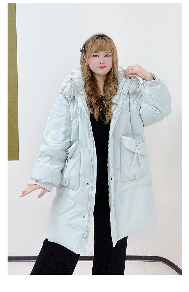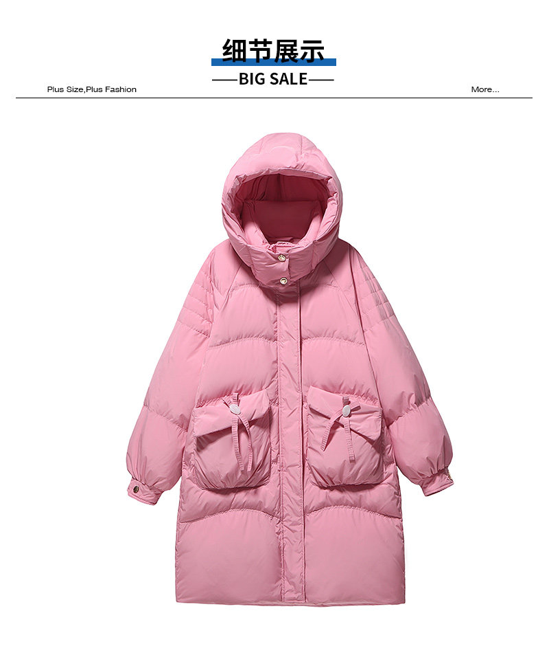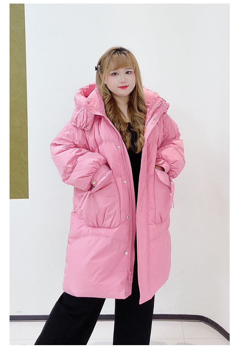 少女减龄大口袋保暖立领外套胖莹莹大码女装冬季中长款连帽羽绒服 [Original Page Link]