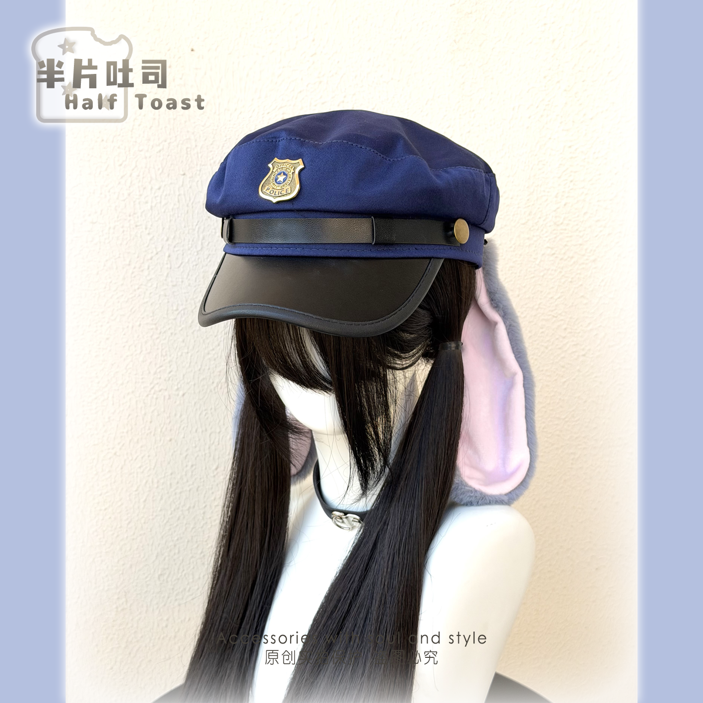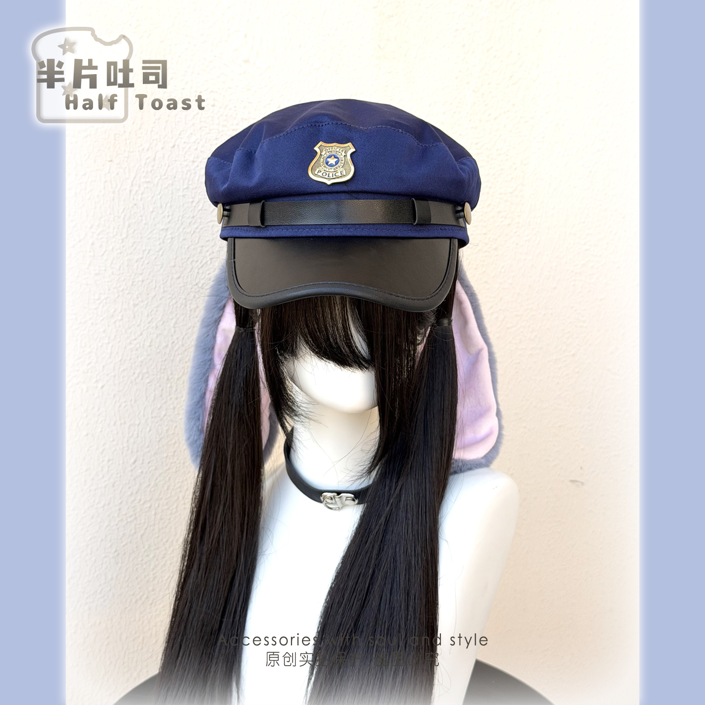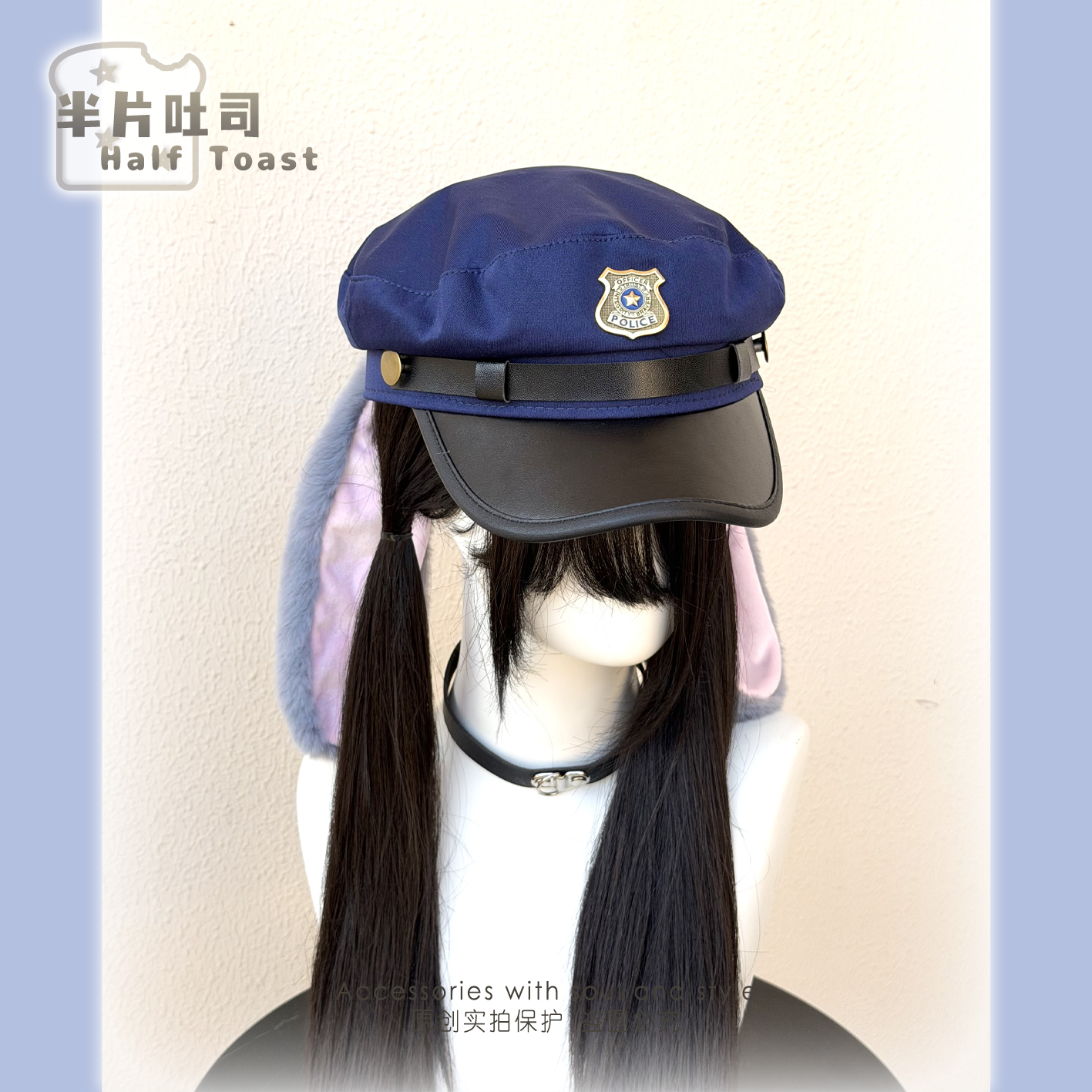 Judy Hopps ears, police hat, rabbit officer cosplay, cute big head circumference to make face look bigger, Nick Wilde photo prop, beret