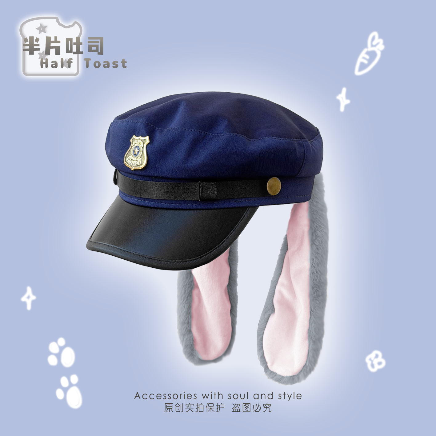 朱迪兔耳朵警帽兔子警官cos可爱大头围显脸小尼克拍照道具贝雷帽 [Original Page Link]