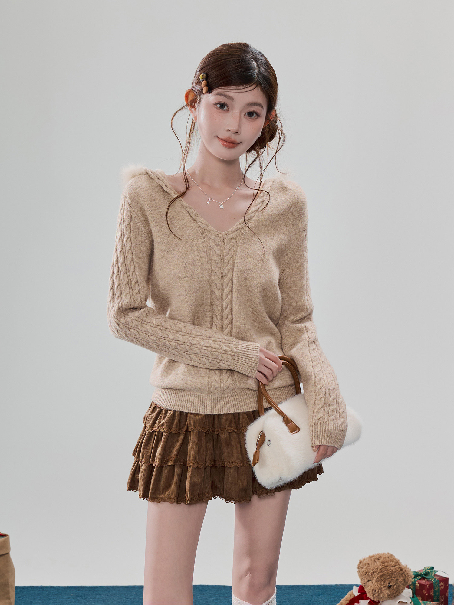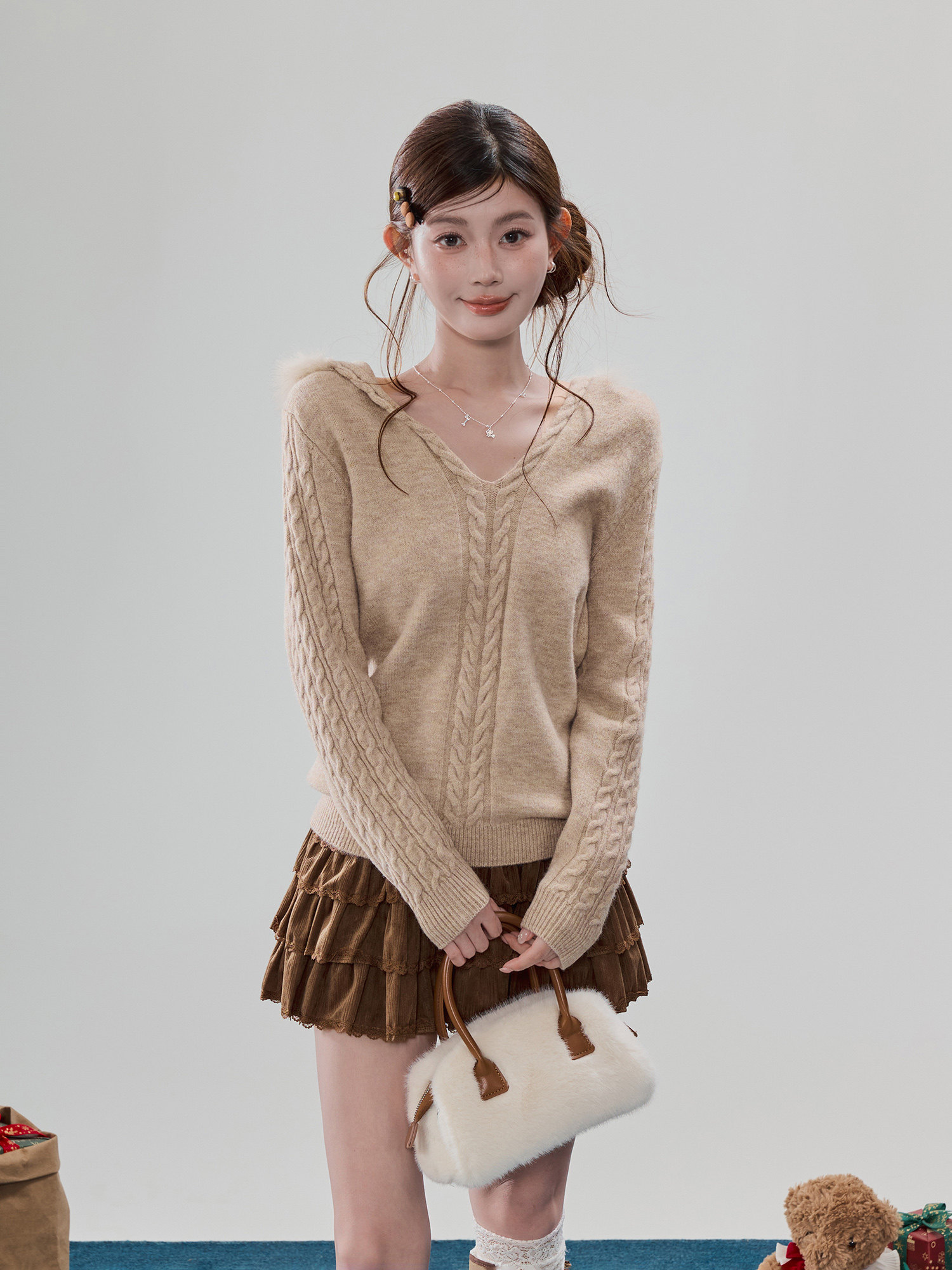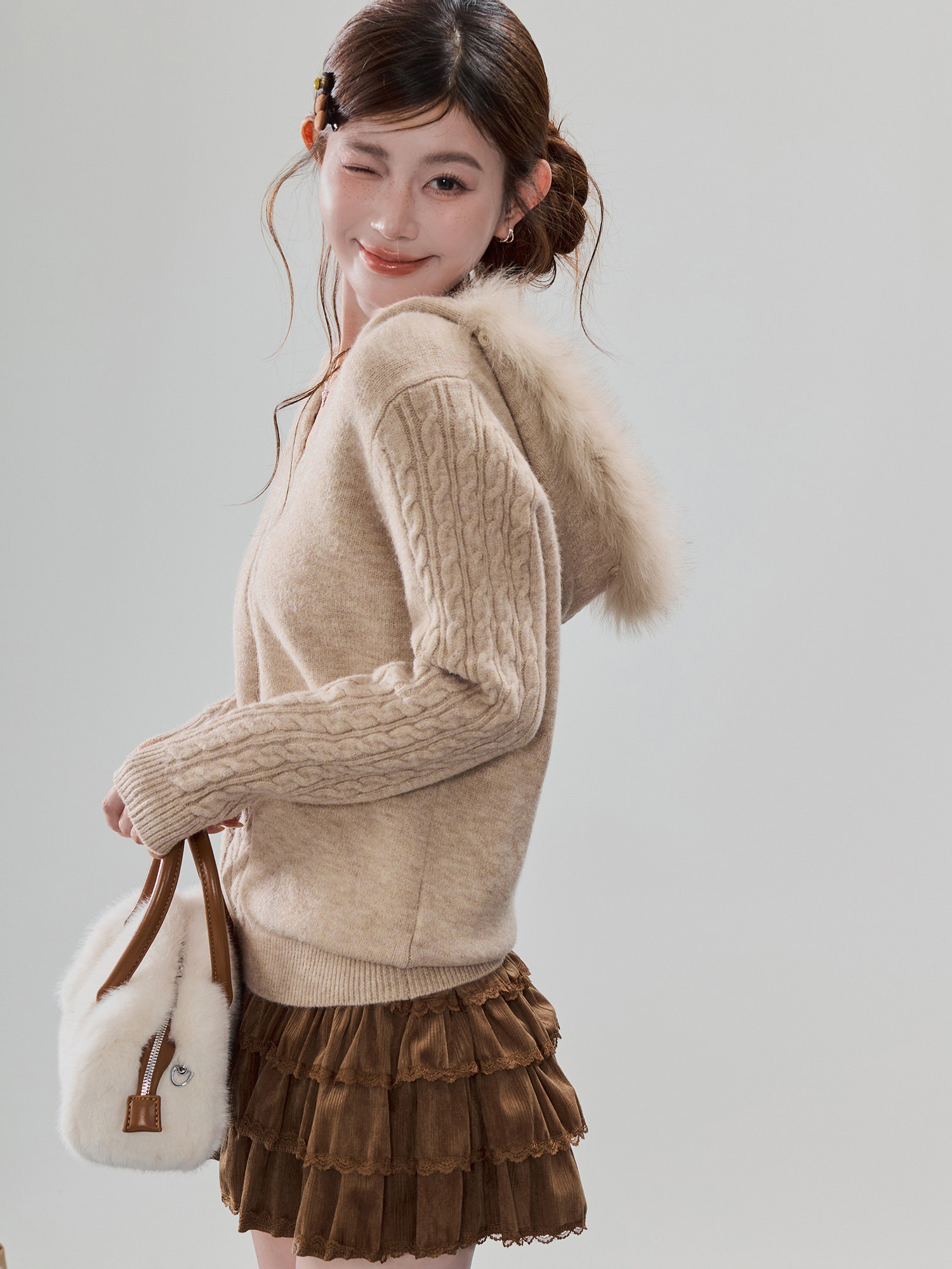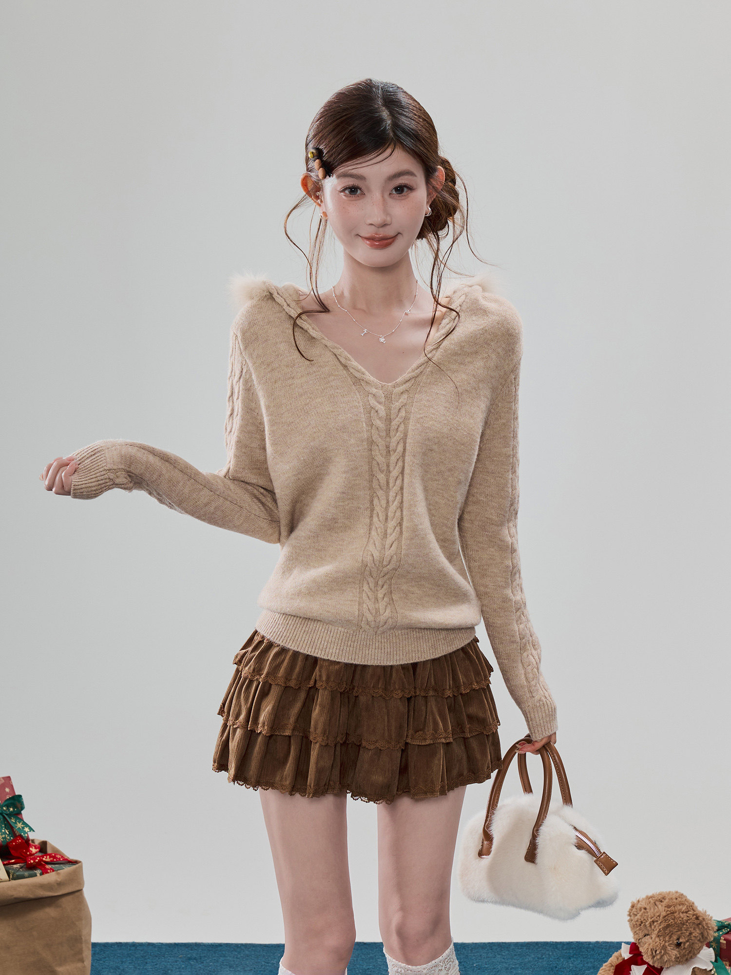 笨比甜Sweety秋冬季毛领连帽宽松毛衣女软糯慵懒外套高级针织上衣 [Original Page Link]