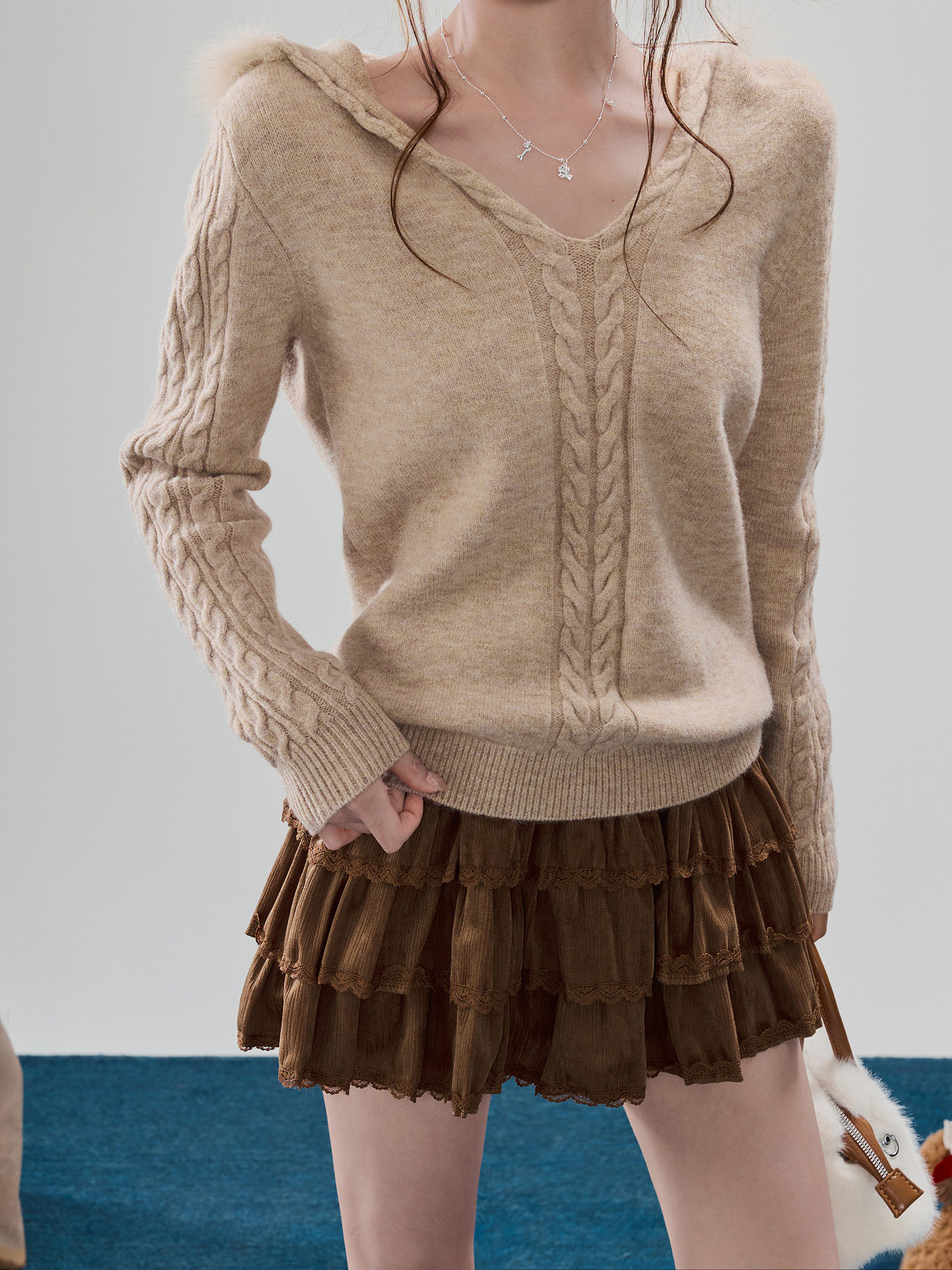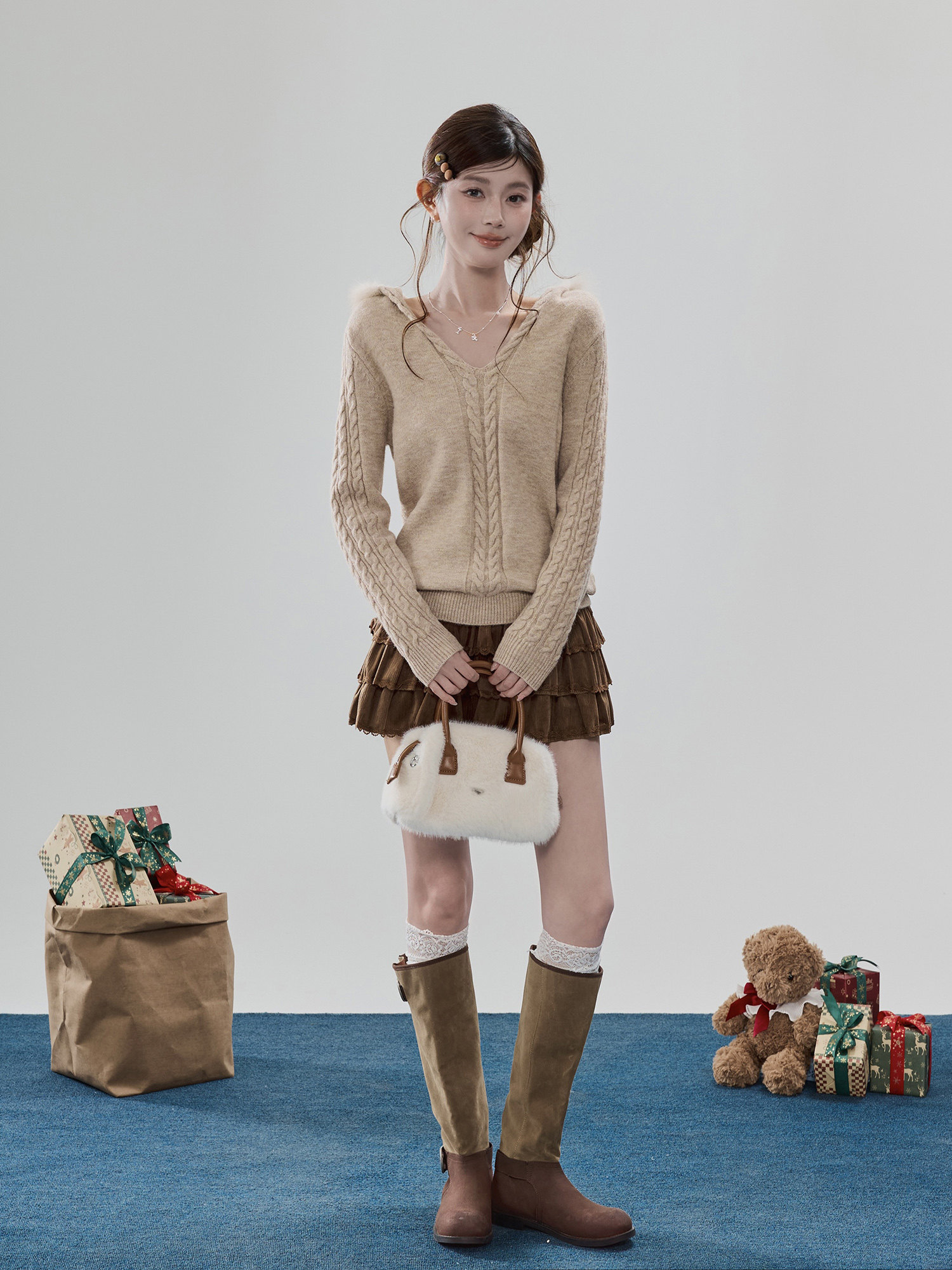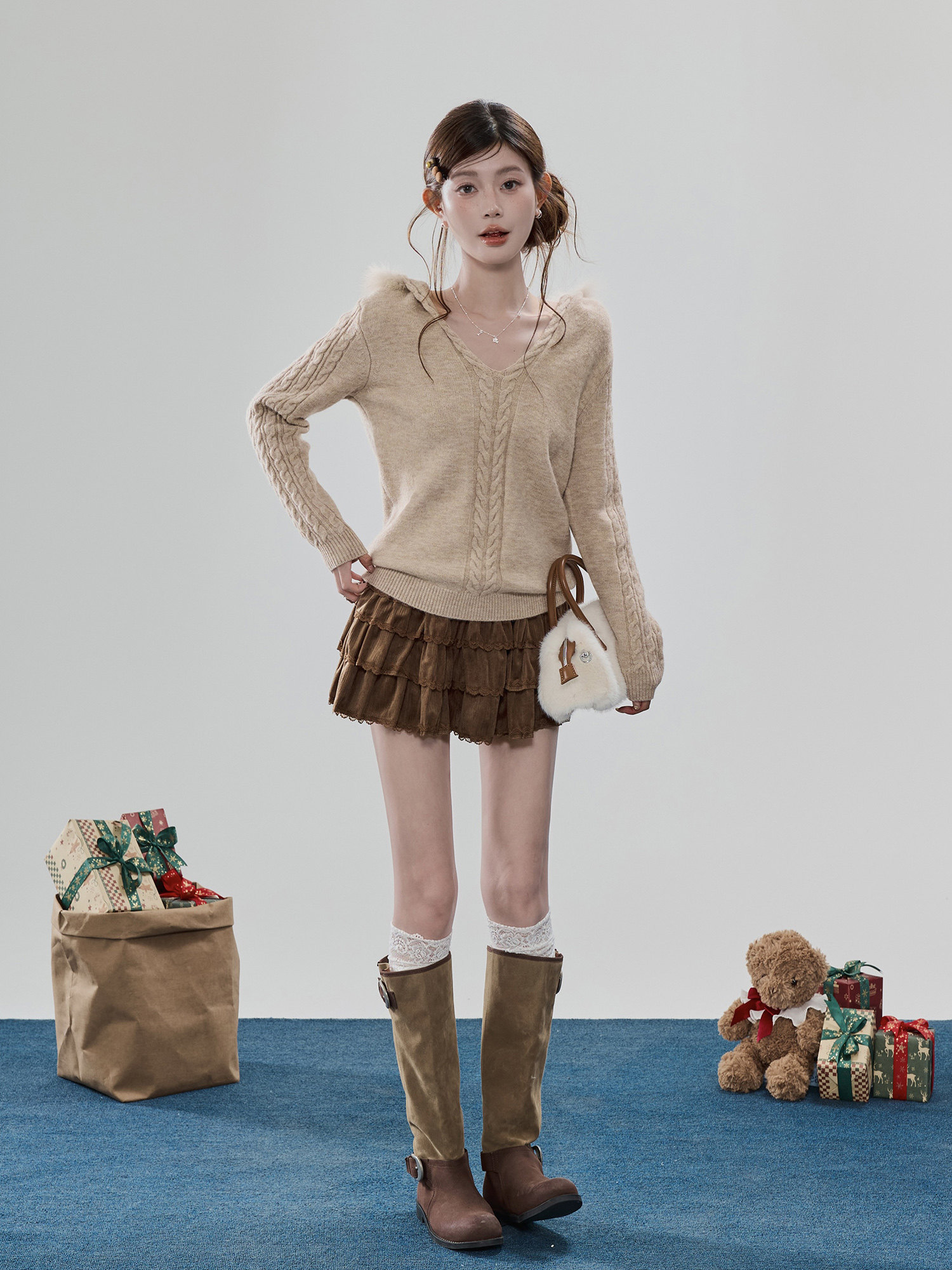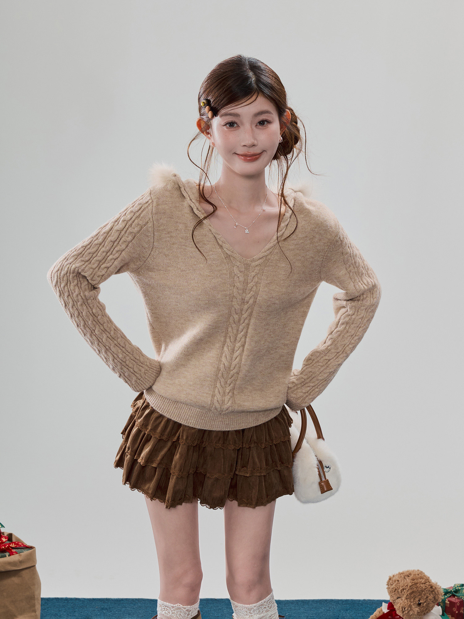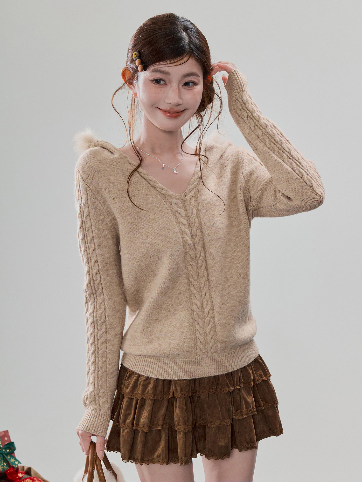 笨比甜Sweety秋冬季毛领连帽宽松毛衣女软糯慵懒外套高级针织上衣 [Original Page Link]