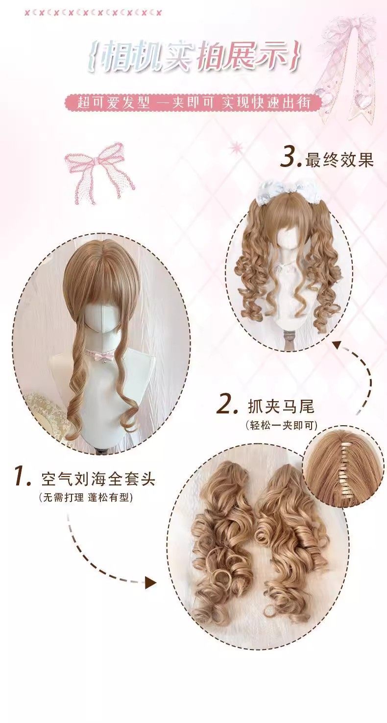 【Lilith Dream Mirror】Lolita style double ponytail wig with tiger's mouth clip, Lolita girl Japanese doll wig cover