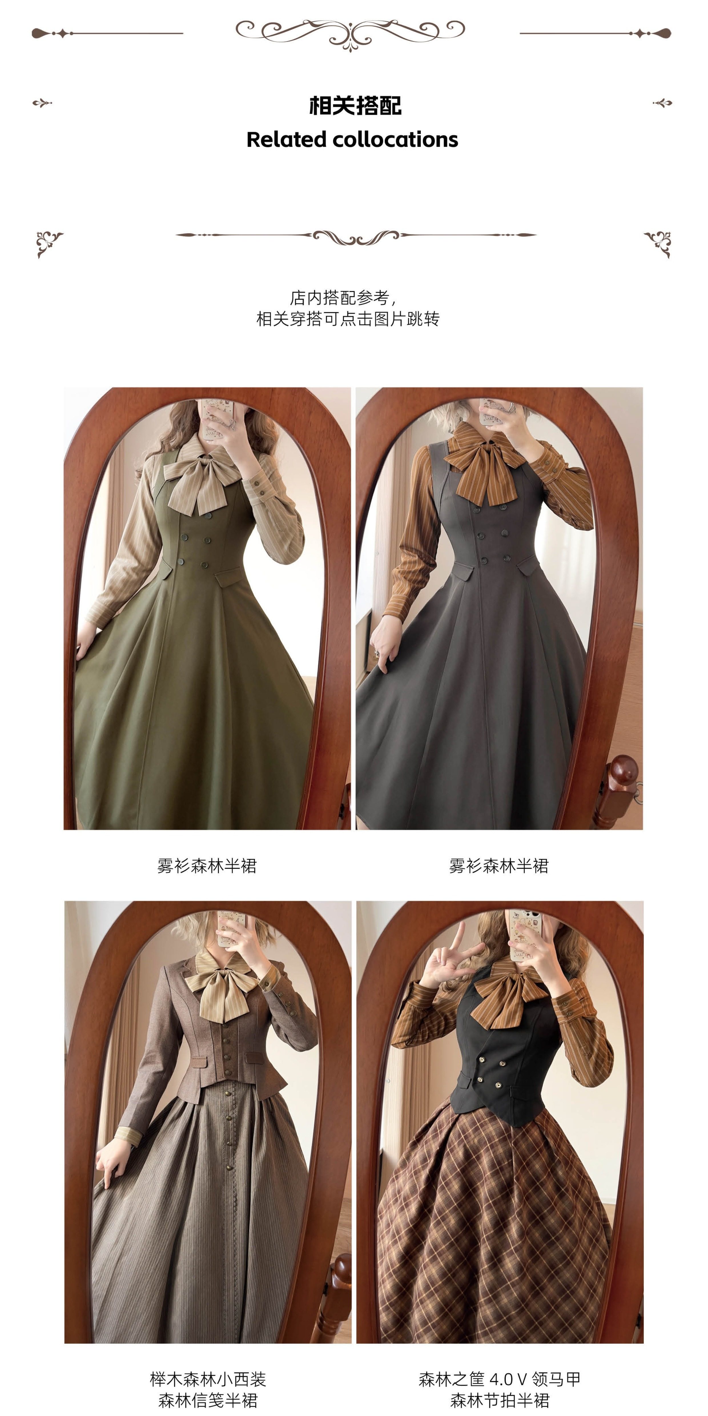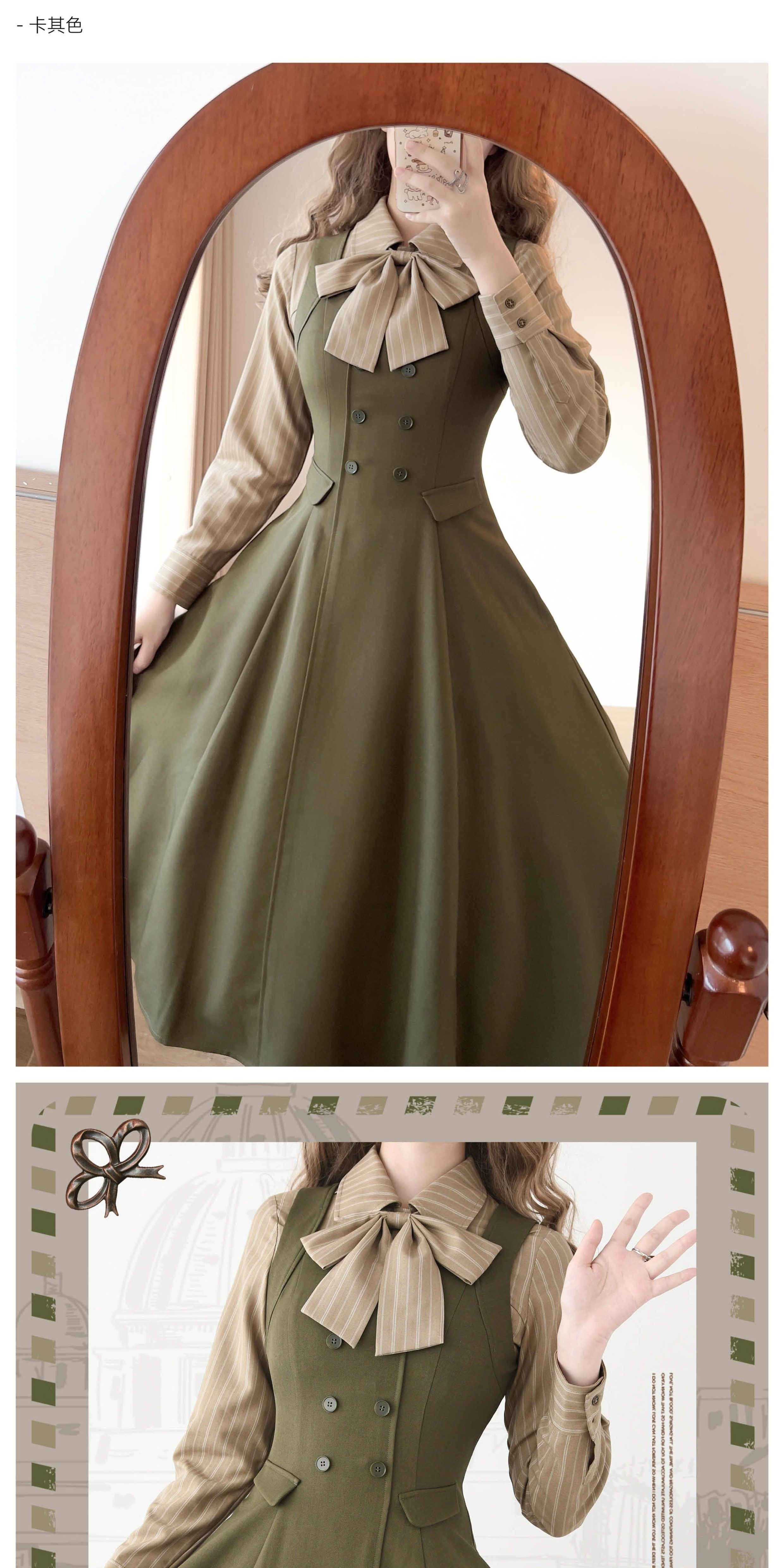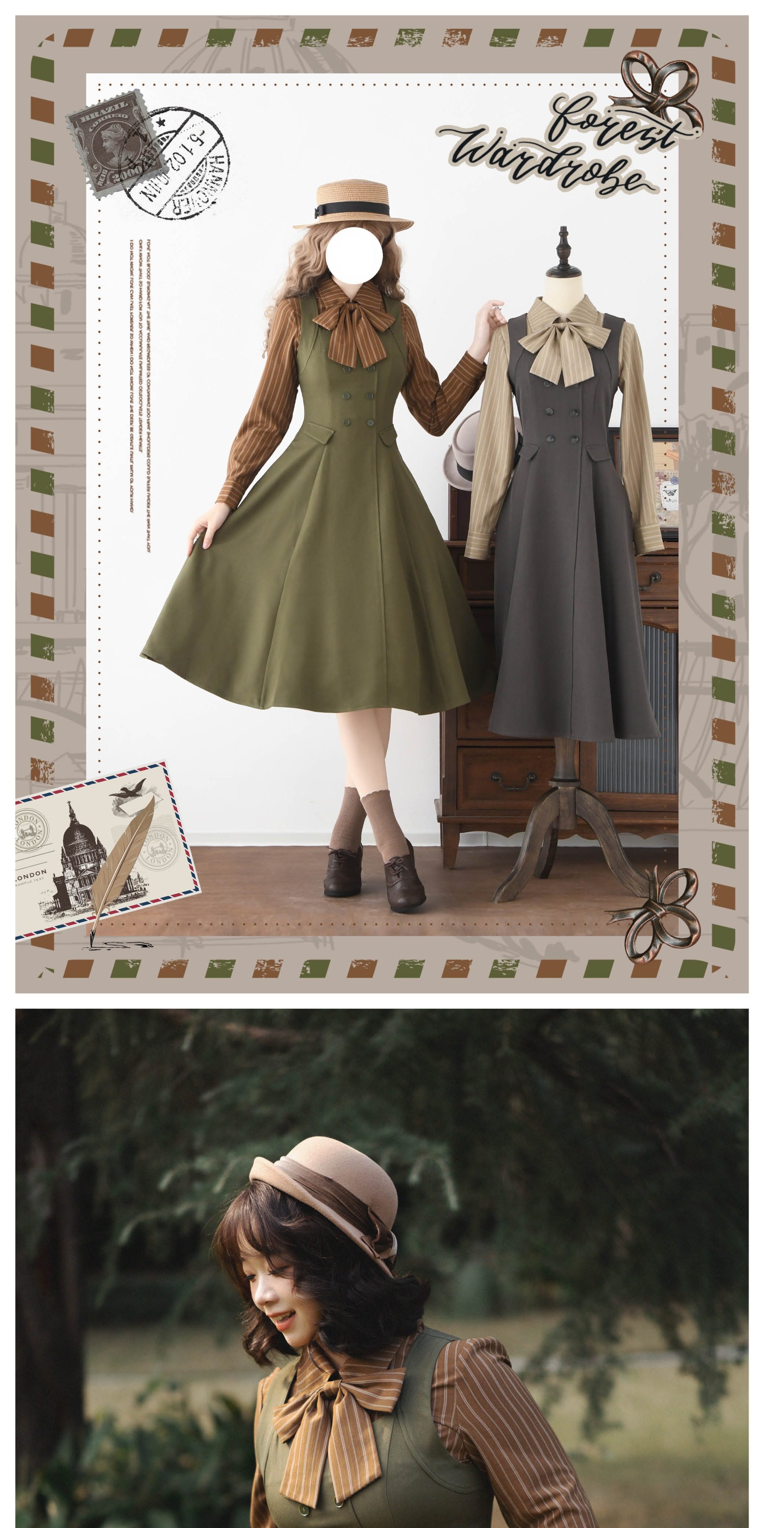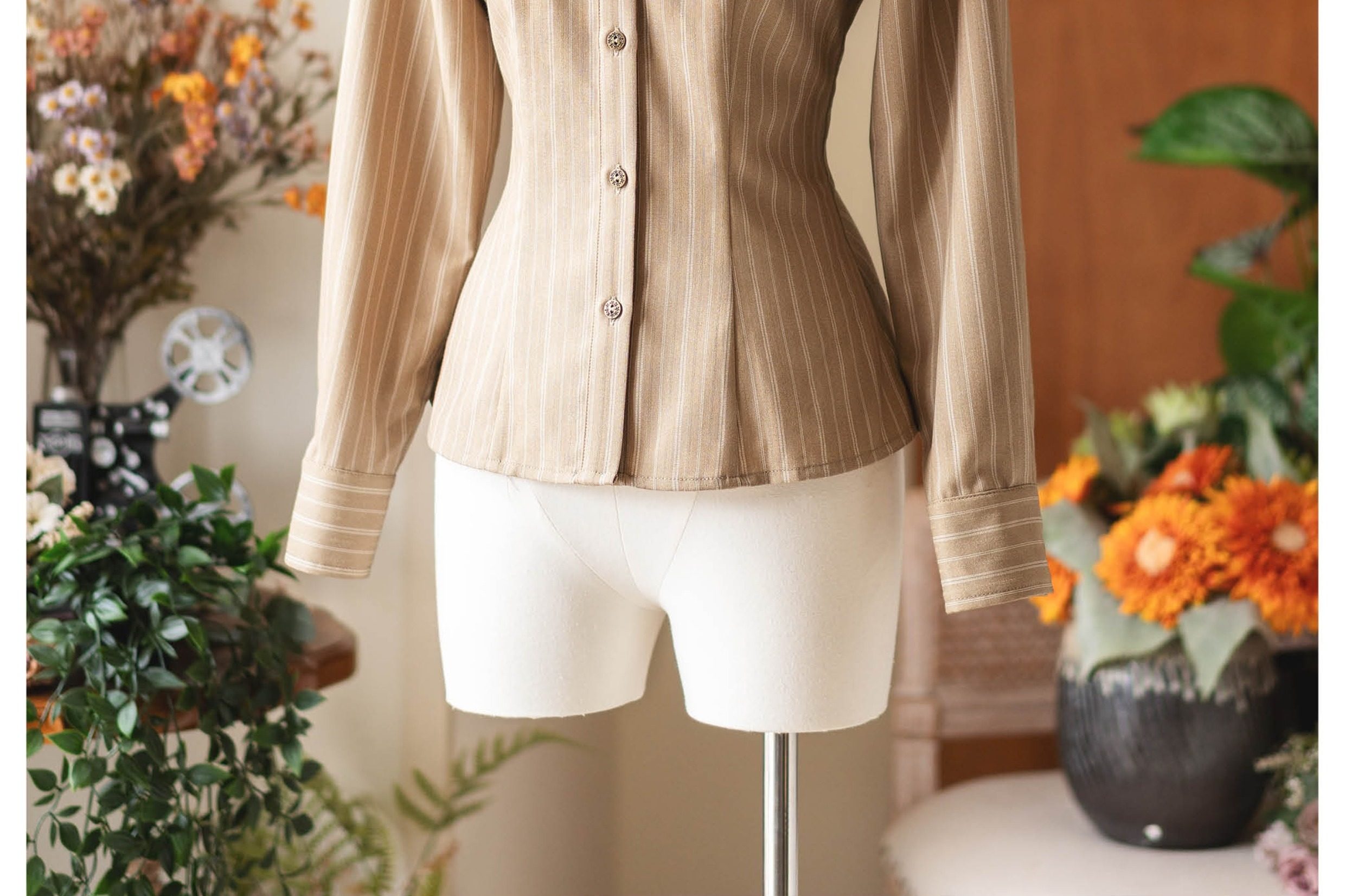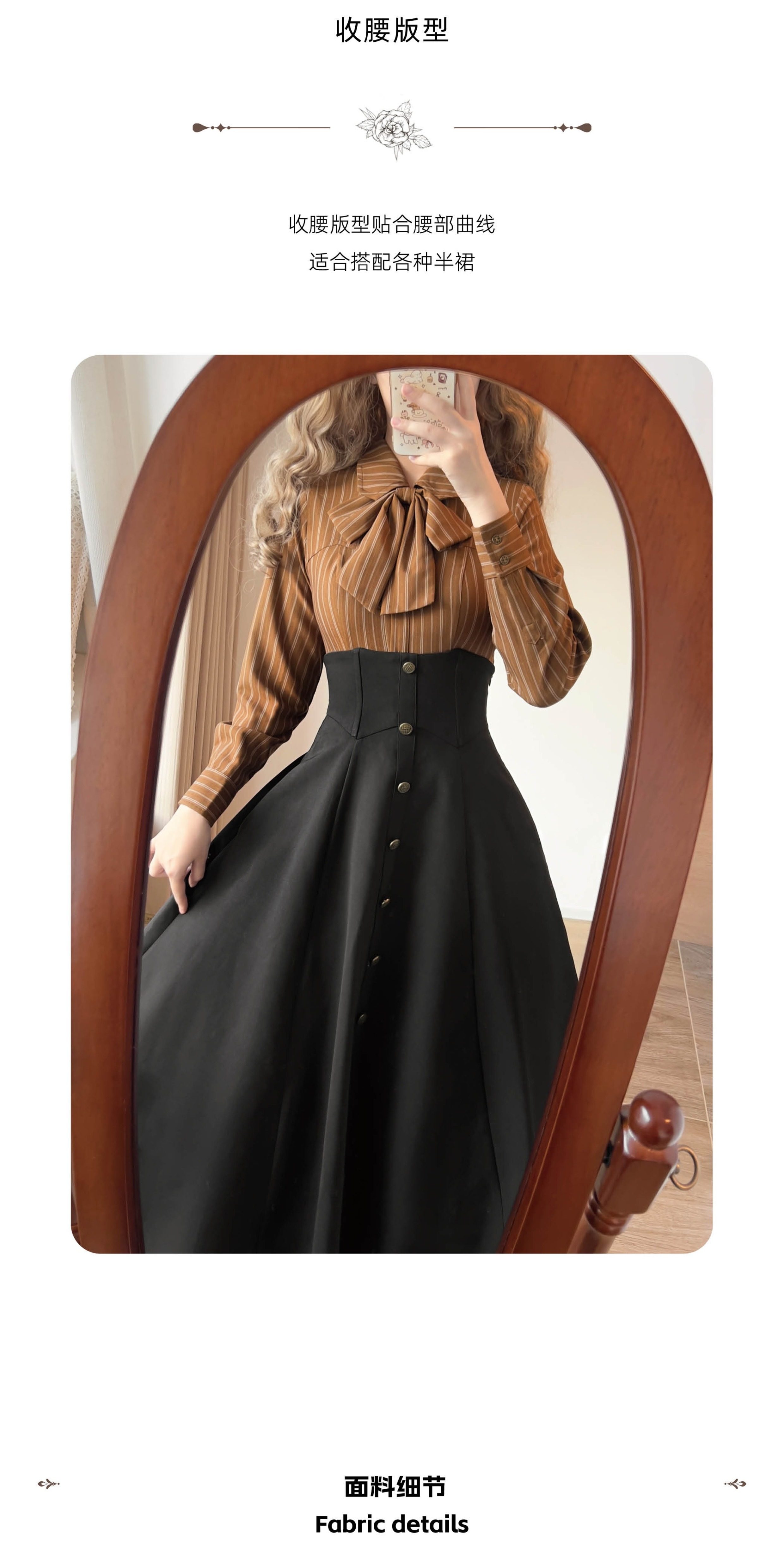 【Ode to the Forest】Forest Wardrobe British Retro Waist-Defining Striped Long-Sleeved Bow Tie Shirt - Versatile for Spring and Autumn