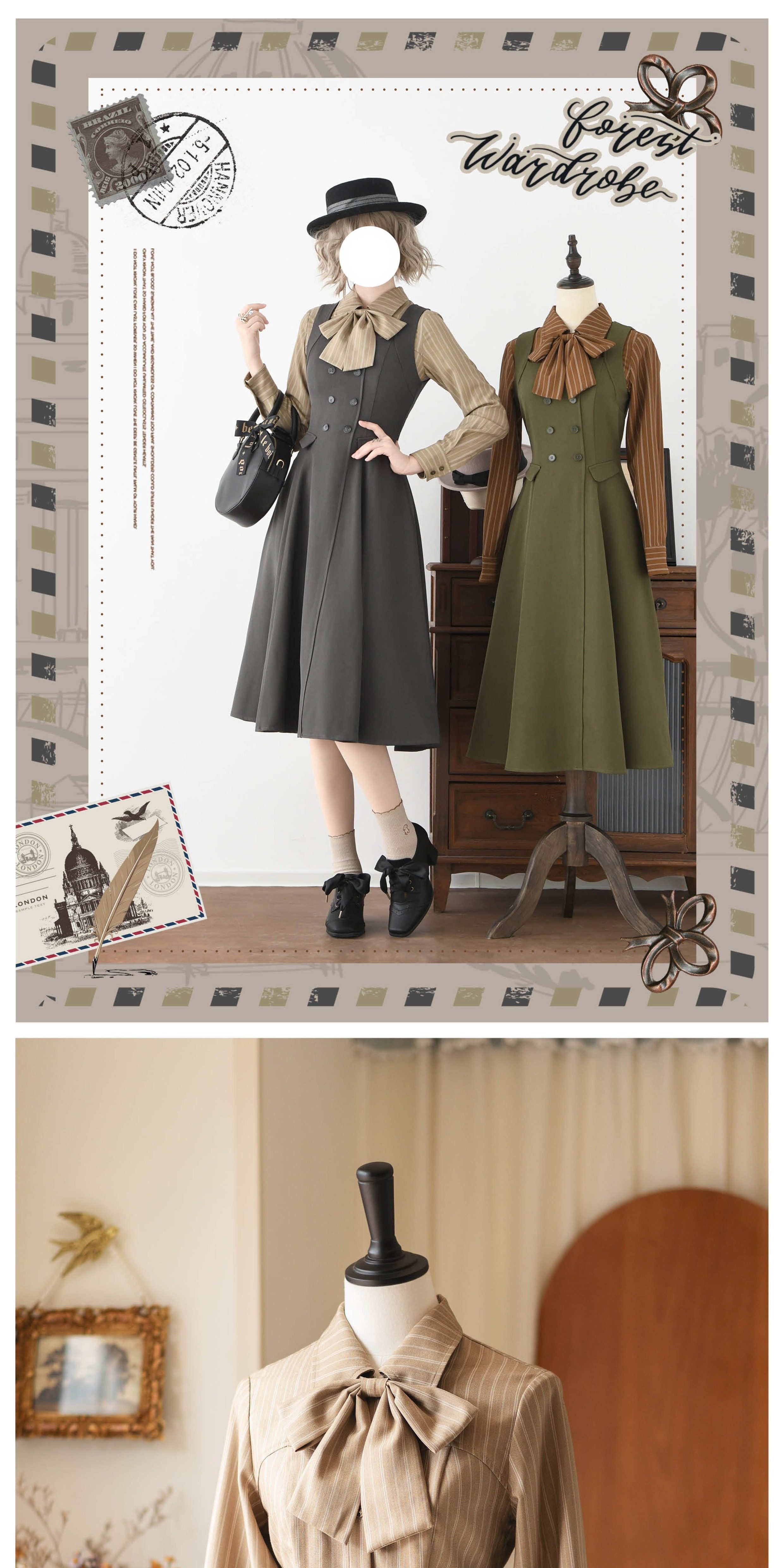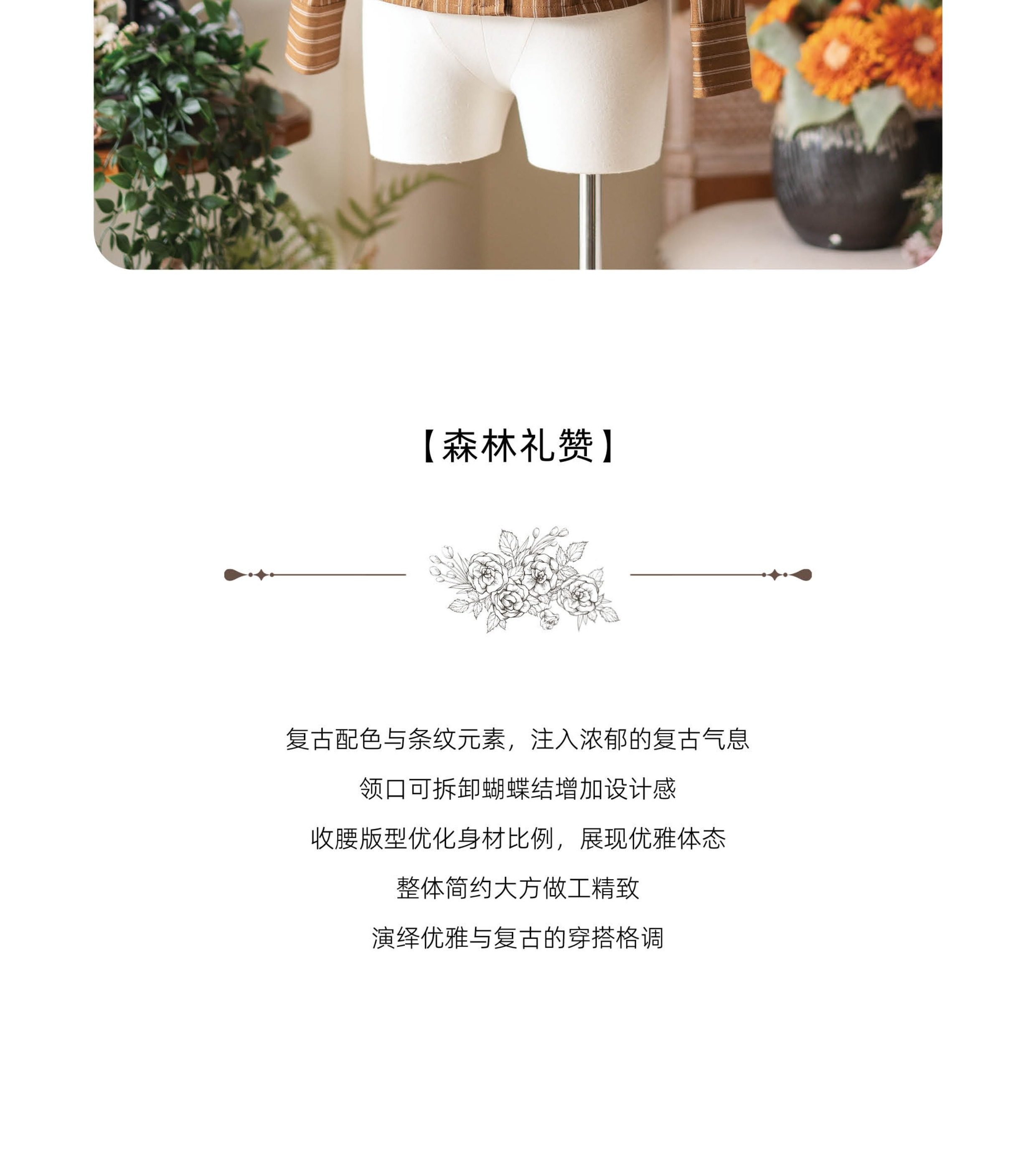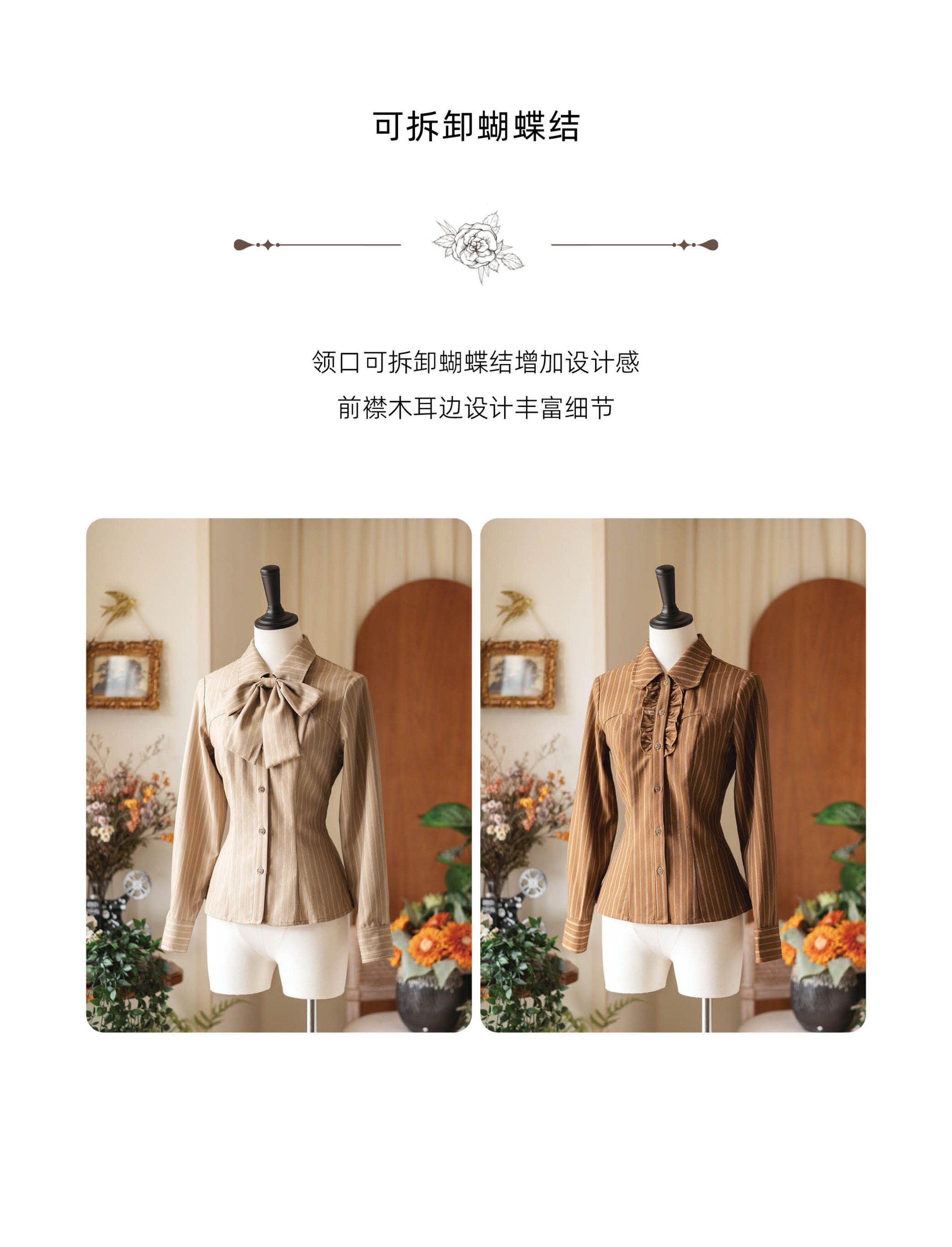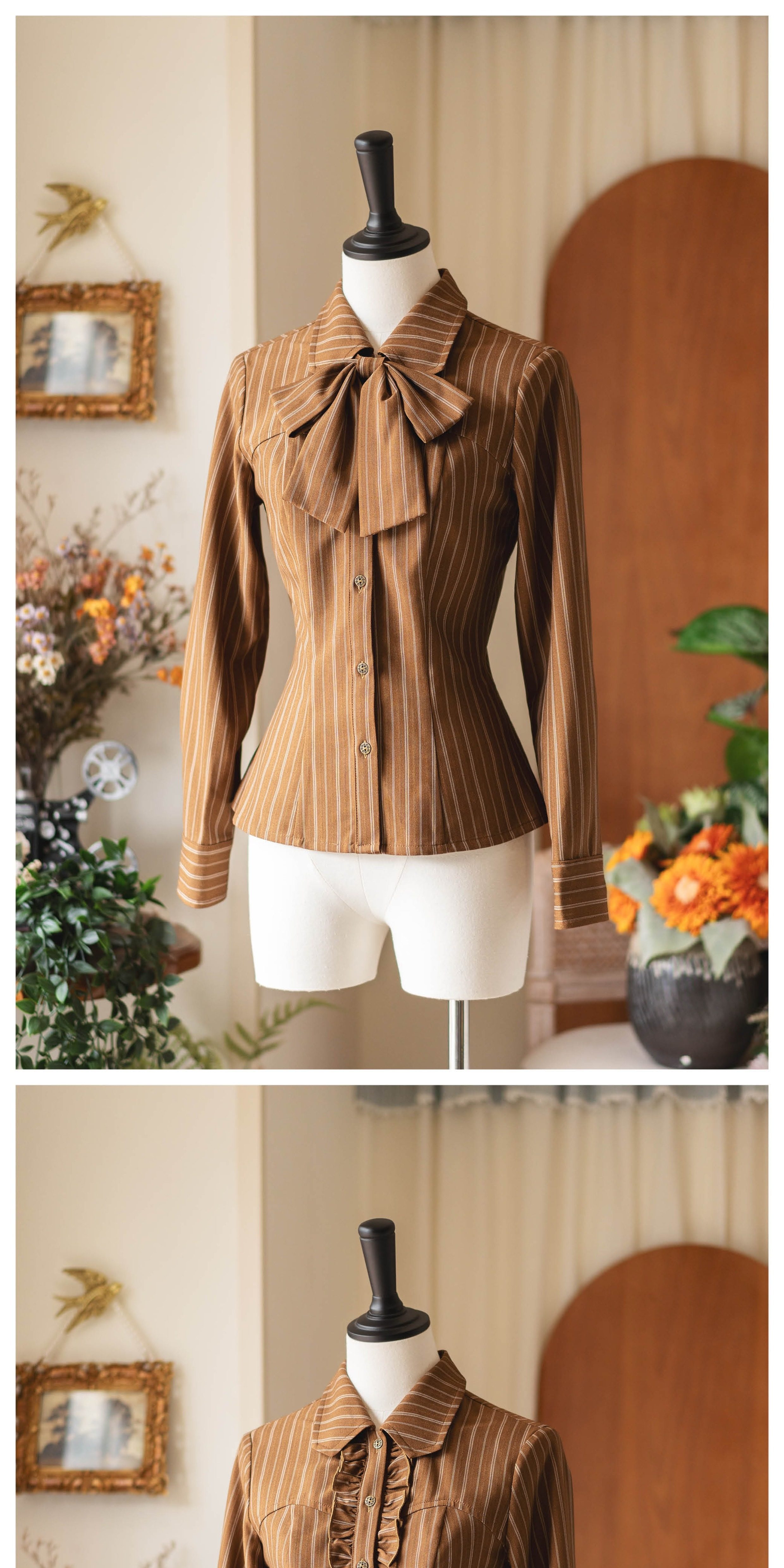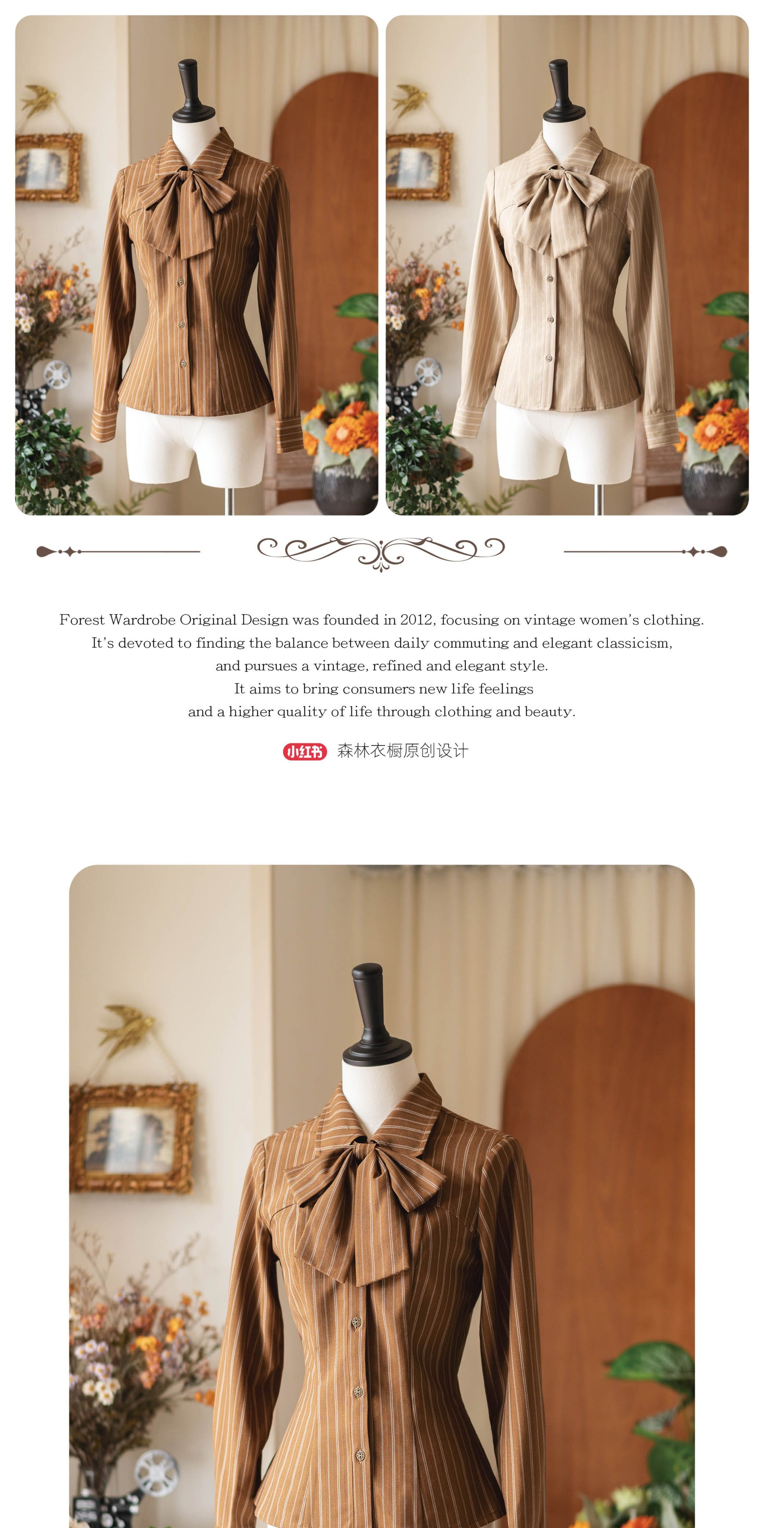 【森林礼赞】森林衣橱英伦复古收腰条纹春秋百搭长袖蝴蝶结衬衣 [Original Page Link]