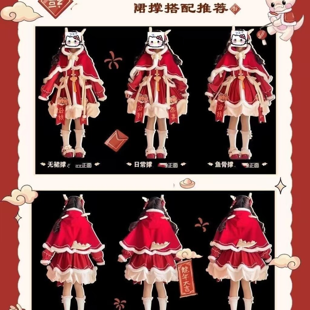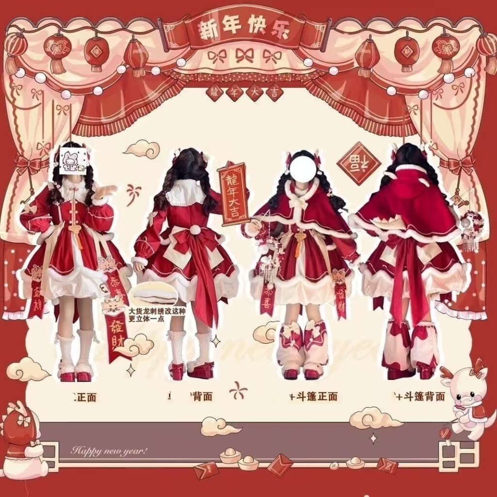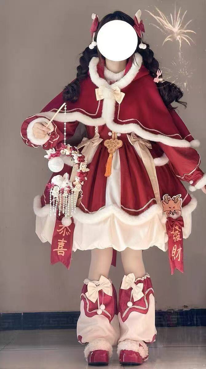 300斤特大码洛丽塔女装新年款可爱小软妹lo裙红色长袖连衣裙套装 [Original Page Link]