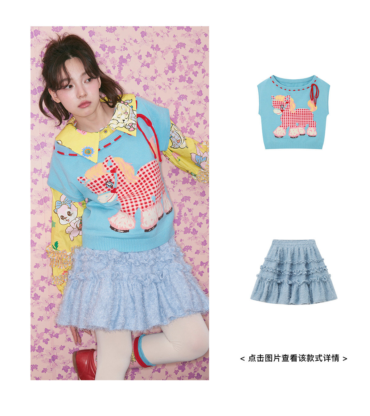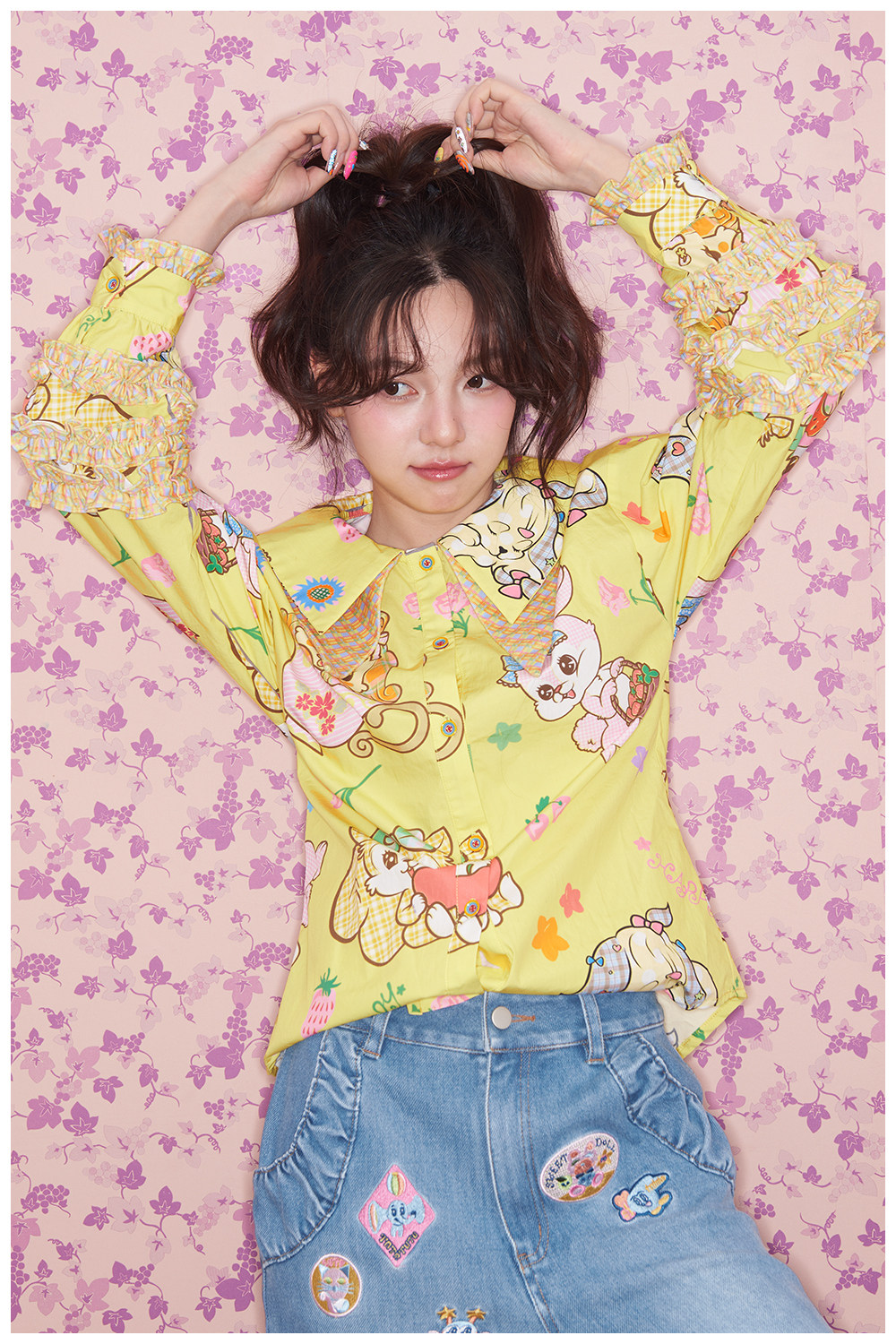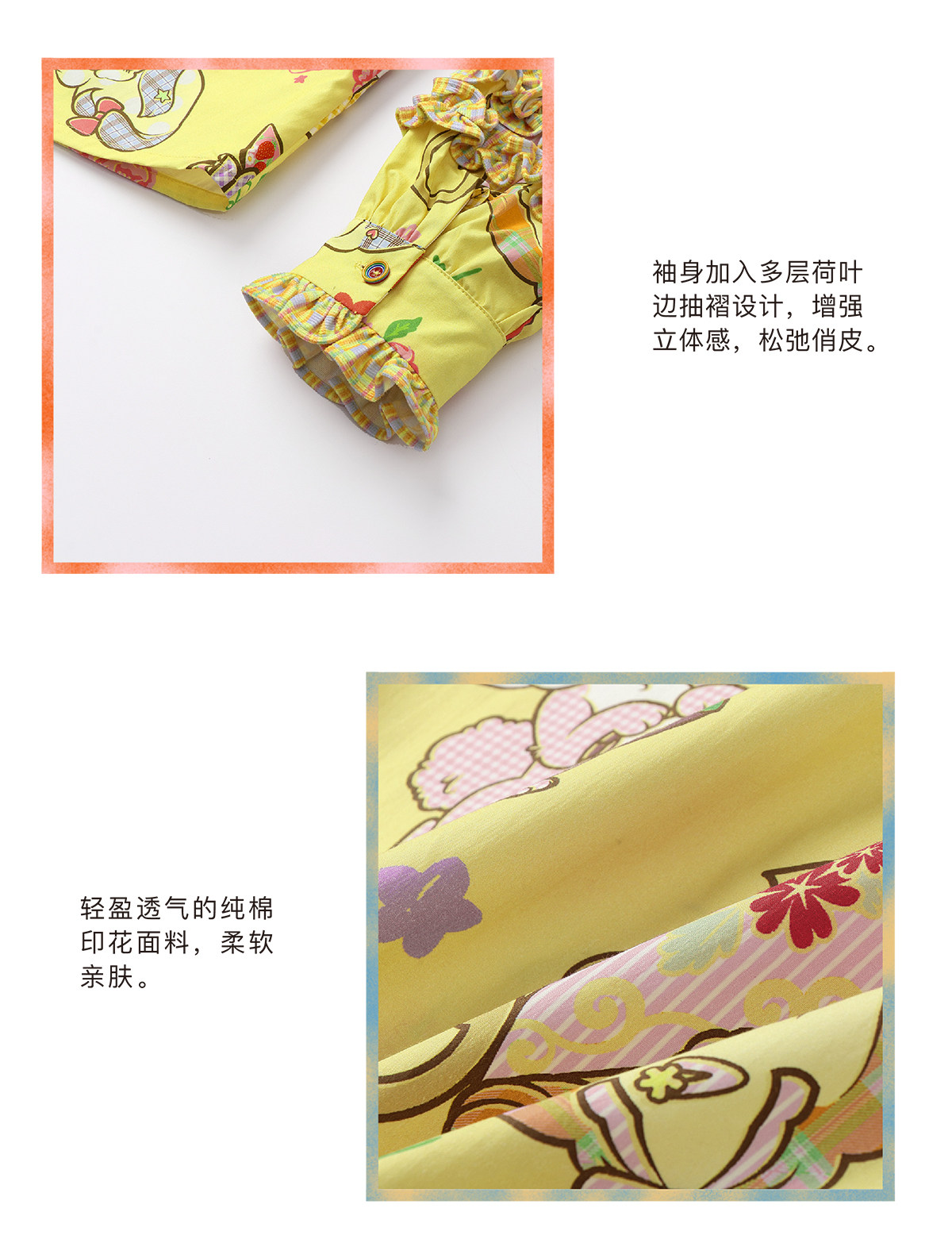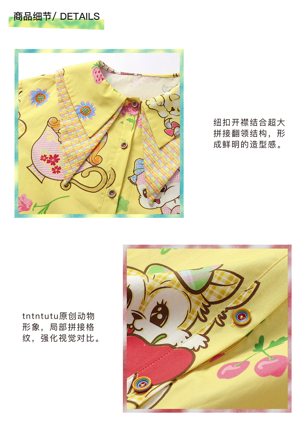 tntntutu黄色荷叶边小动物印花衬衫拼接格纹尖领童趣复古桃心商店 [Original Page Link]