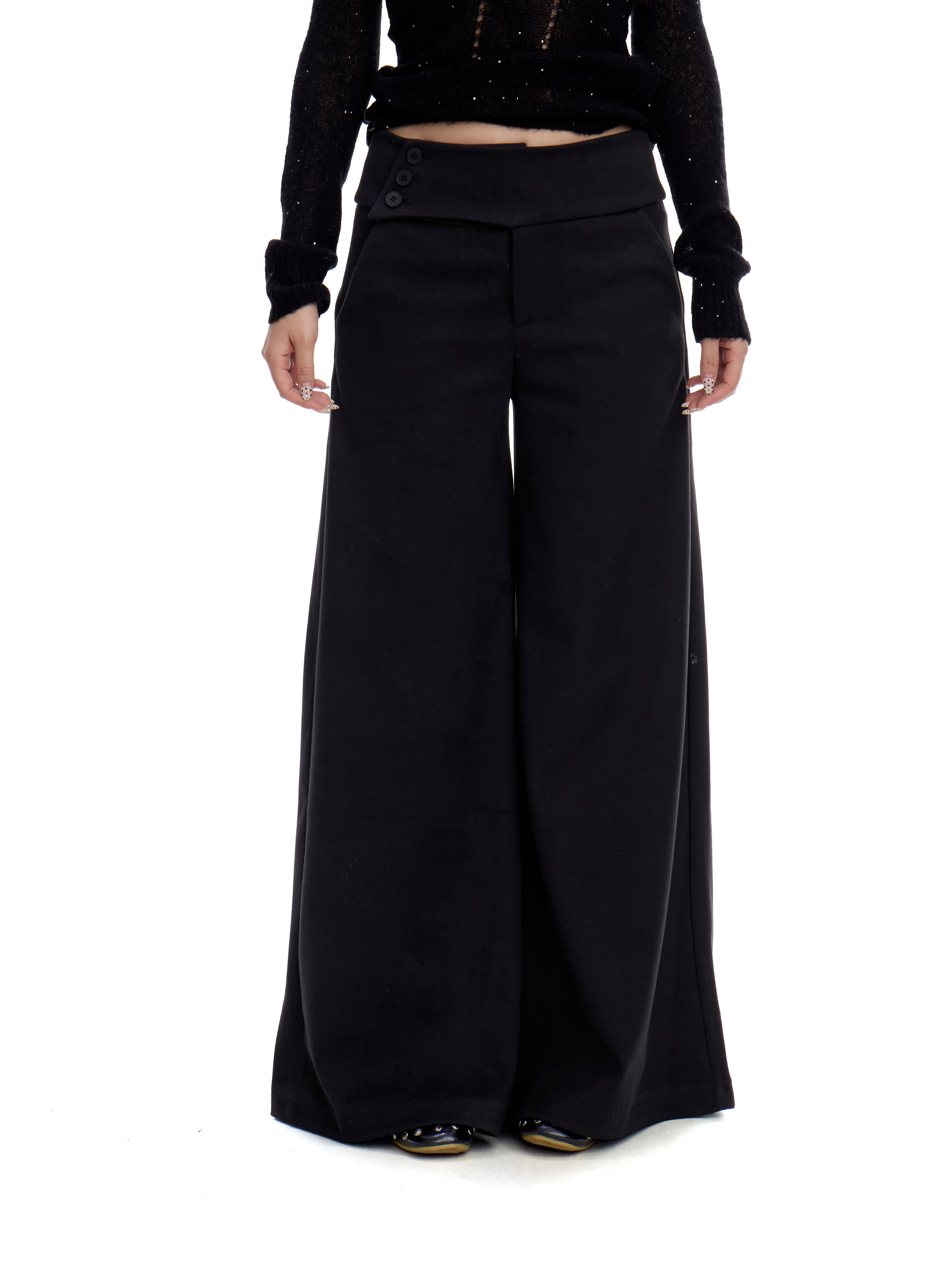WITHMIN Black Casual Pants for Women, New Autumn Style, Elegant and Sophisticated, Low-Waisted, Slimming Wide-Leg Pants for Women