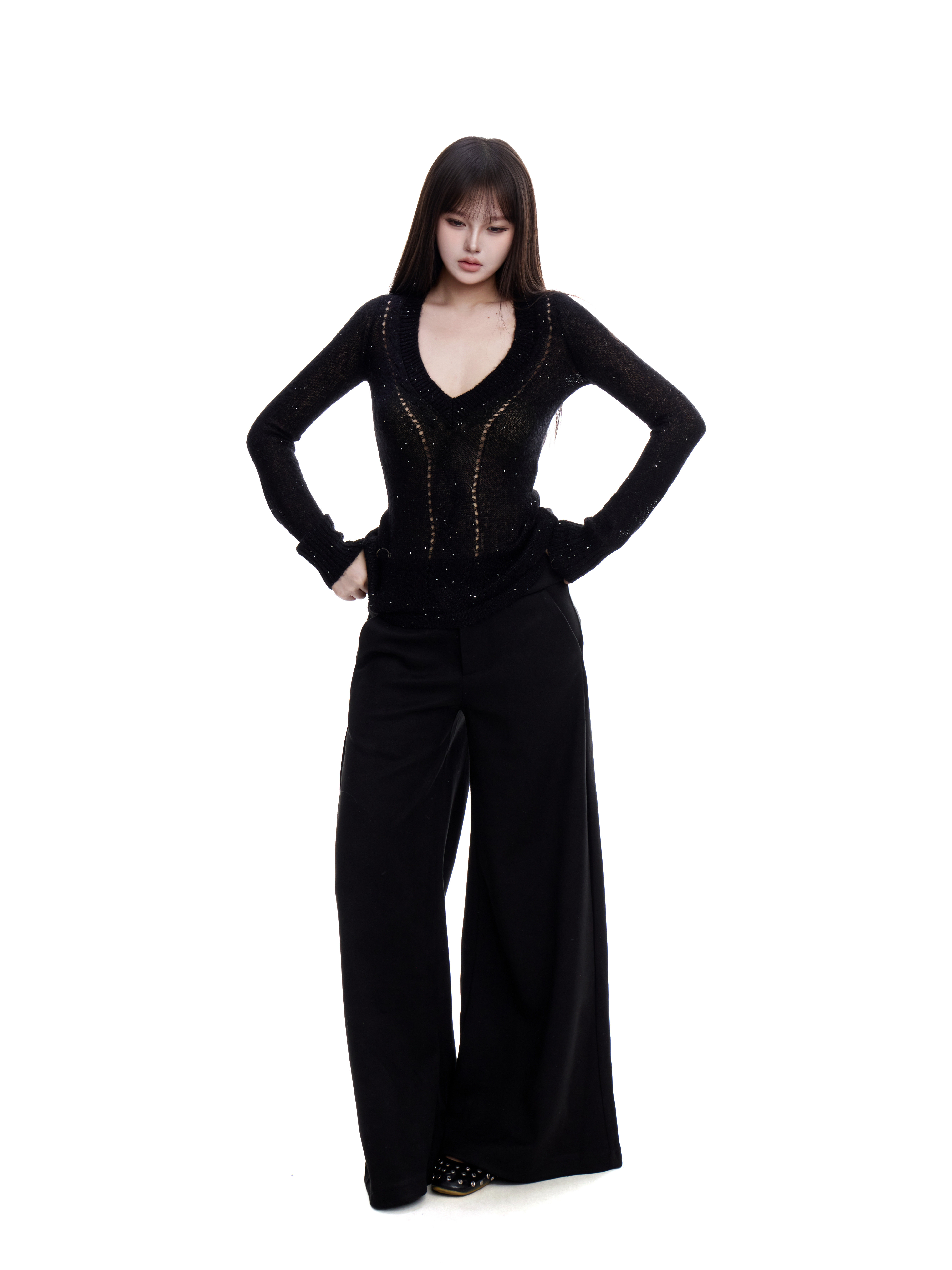 WITHMIN 黑色休闲裤女秋季新款气质高级感低腰显瘦阔腿裤女长裤子 [Original Page Link]