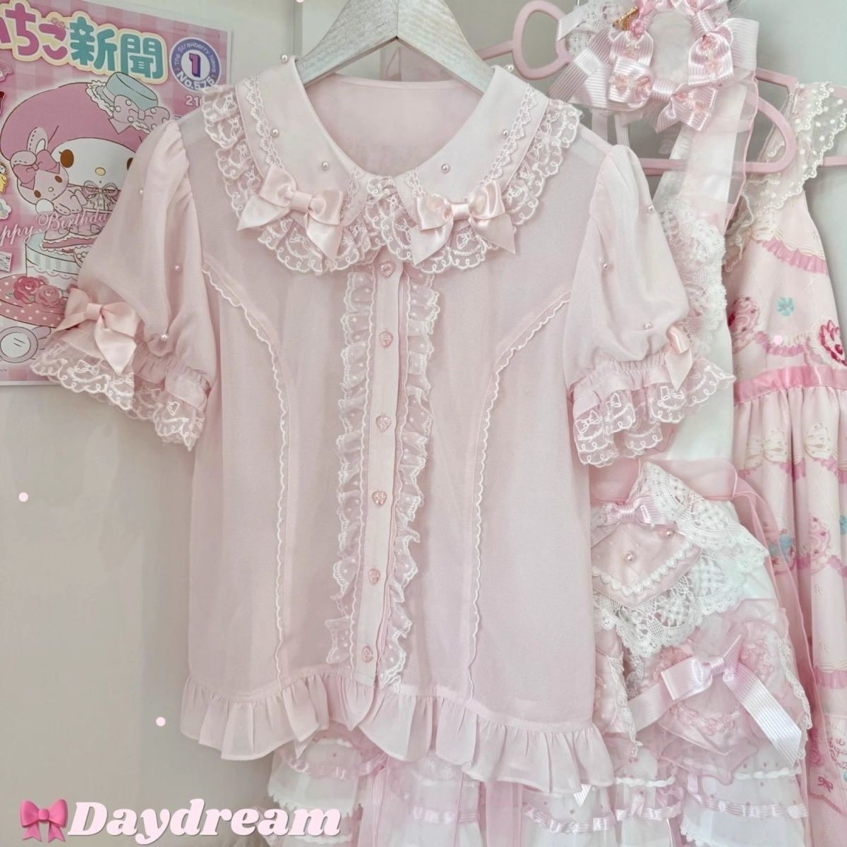 冰透珍珠 lolita雪纺珍珠百搭蝴蝶结衬衫 [Original Page Link]