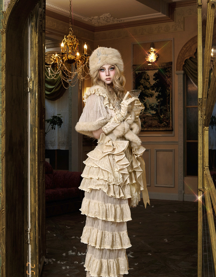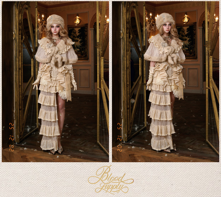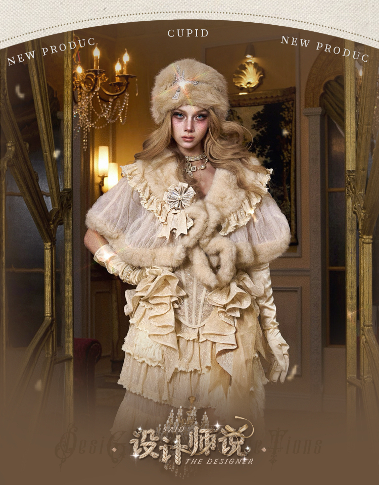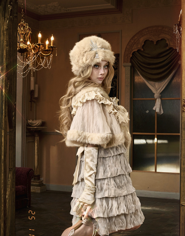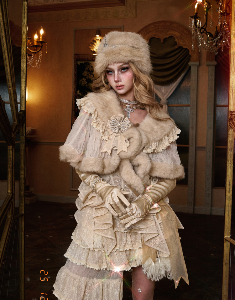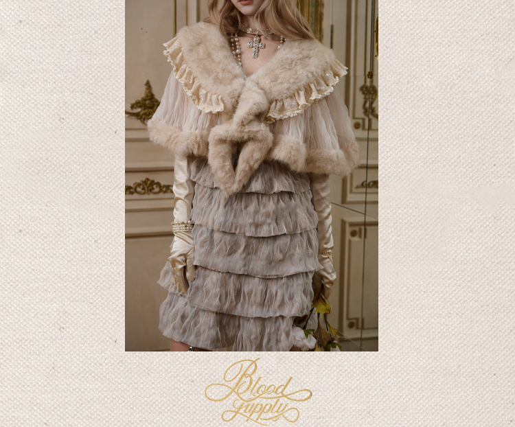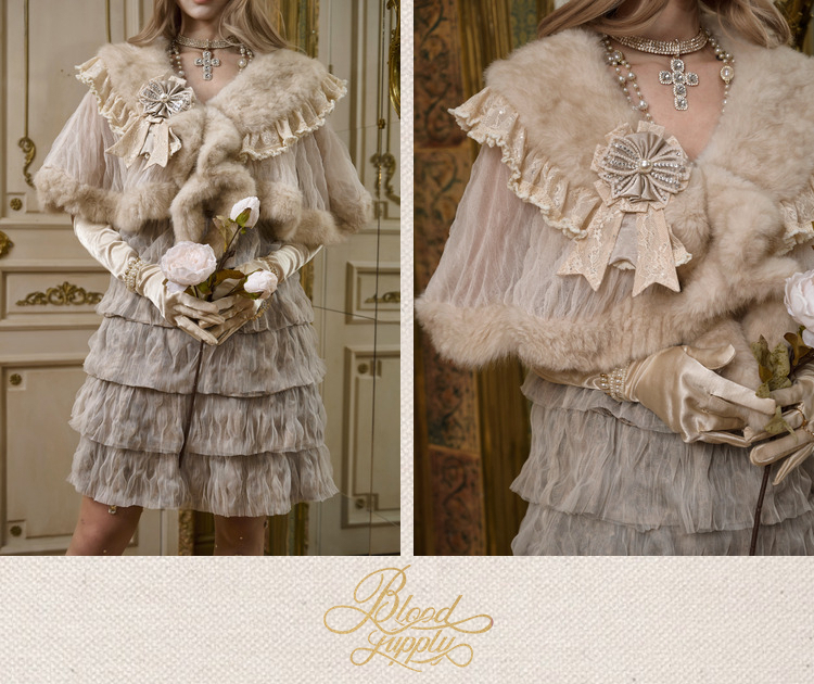 Blood Supply Original ◆ Slavic Heiress Beige Eco-friendly Shawl Fur Cape Dress Outerwear Christmas
