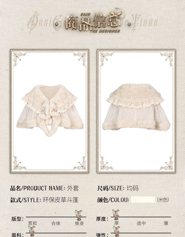 血液供给原创◆斯拉夫千金 米色环保披肩皮草斗篷礼服外搭圣诞节 [Original Page Link]
